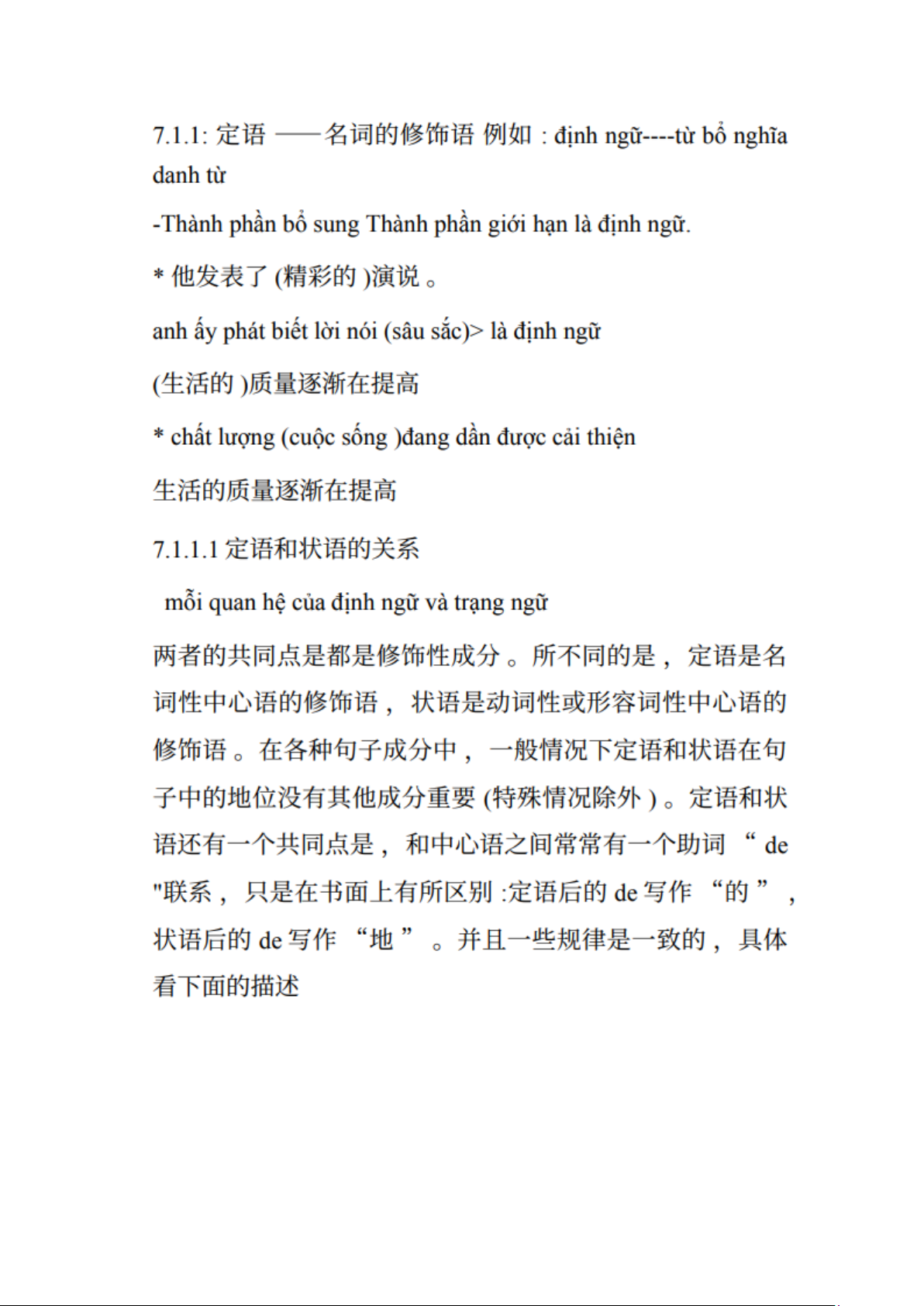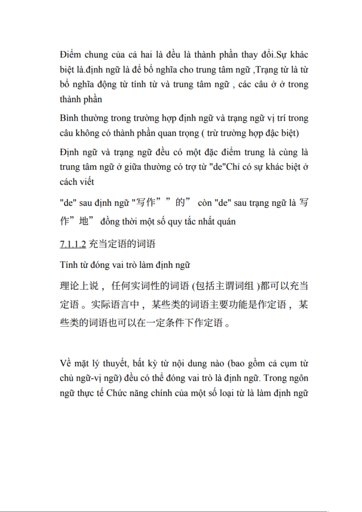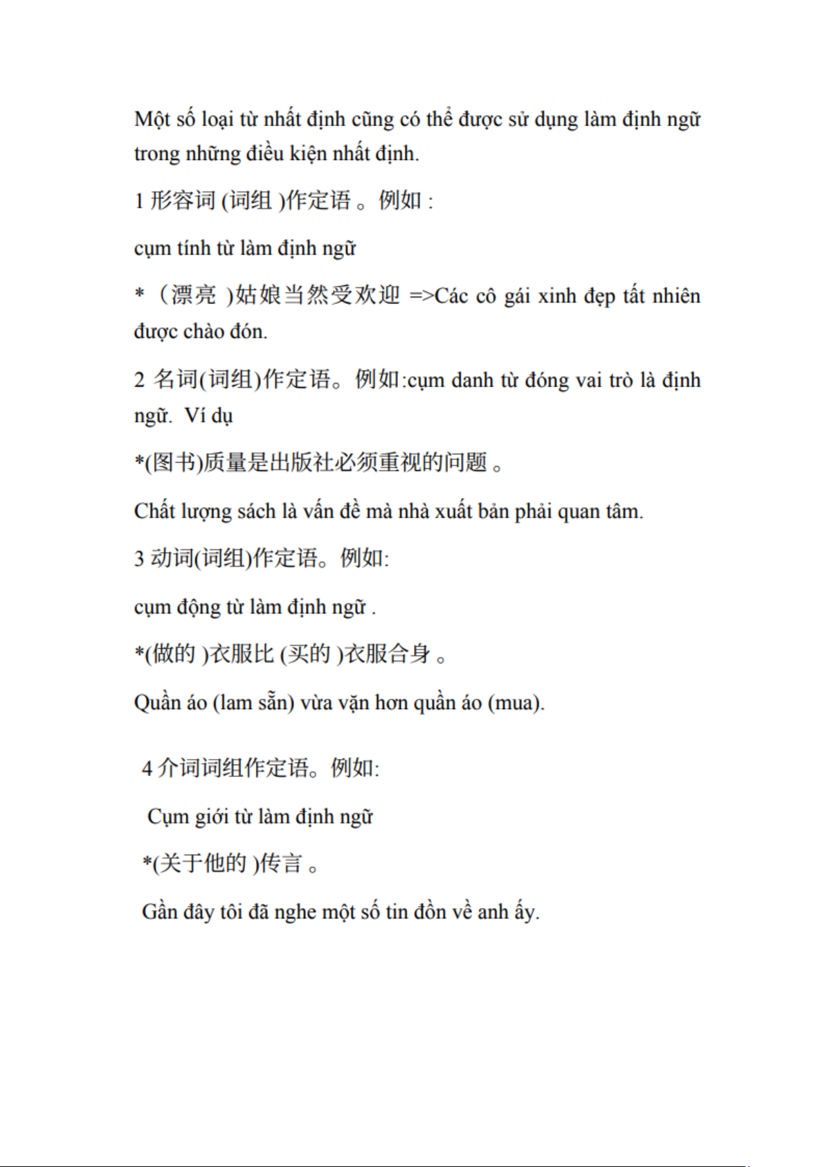 Định ngữ và trạng ngữ môn Ngôn ngữ Trung | Trường Đại học Hà Nội