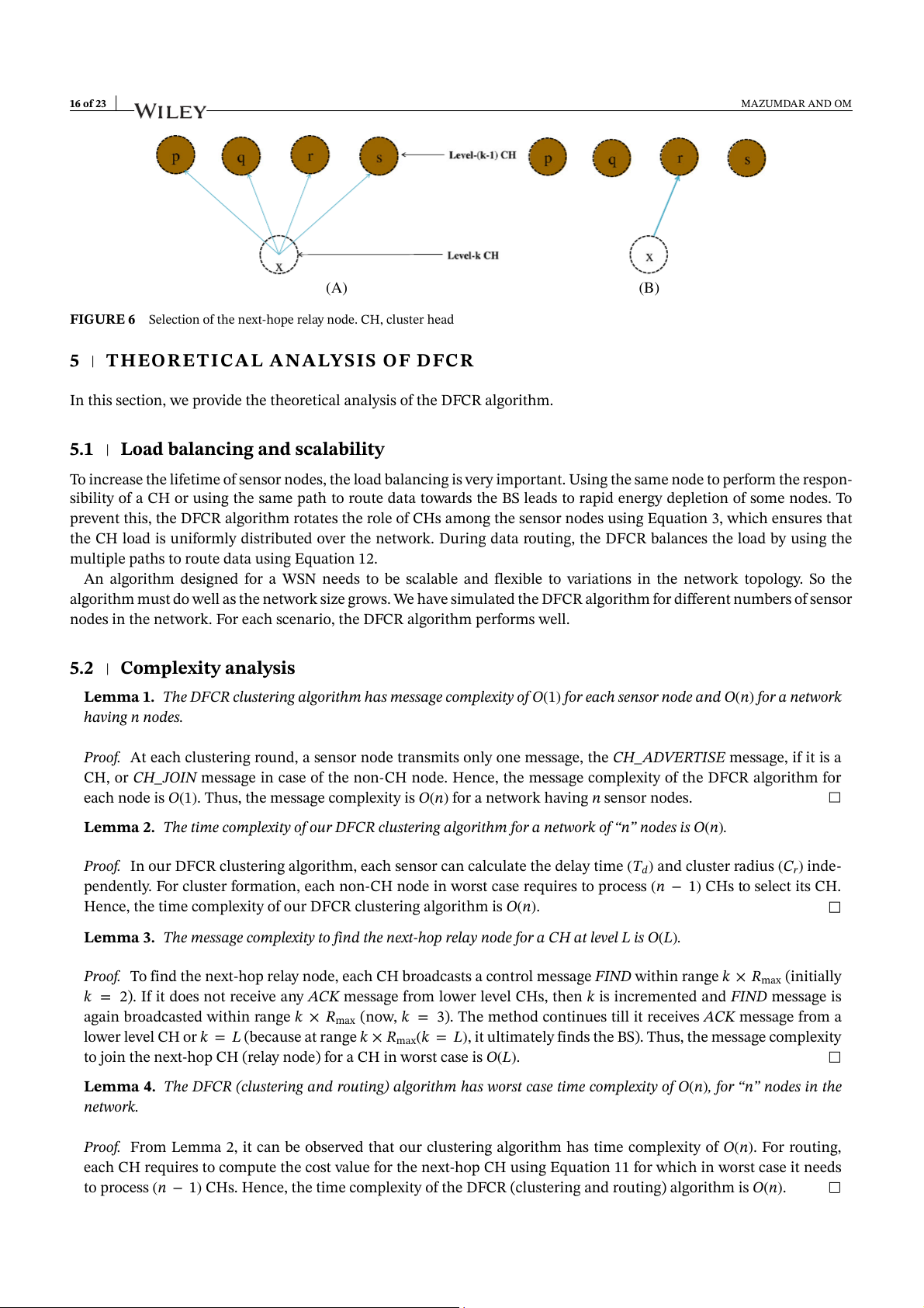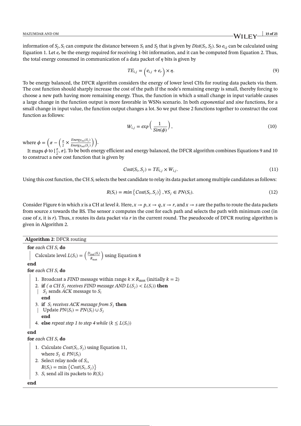 case of x, it is r). Thus, x routes its data packet via r in the current round. The pseudocode of DFCR routing algorithm is given in Algorithm 2. 16 of 23 MAZUMDAR AND OM (A) (B)