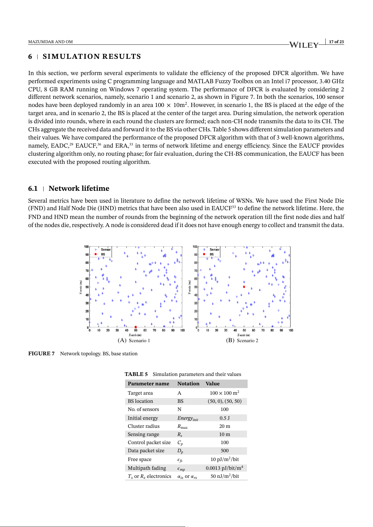 to process (n − 1) CHs. Hence, the time complexity of the DFCR (clustering and routing) algorithm is O(n). MAZUMDAR AND OM 17 of 23 6 SIMULATION RESULTS