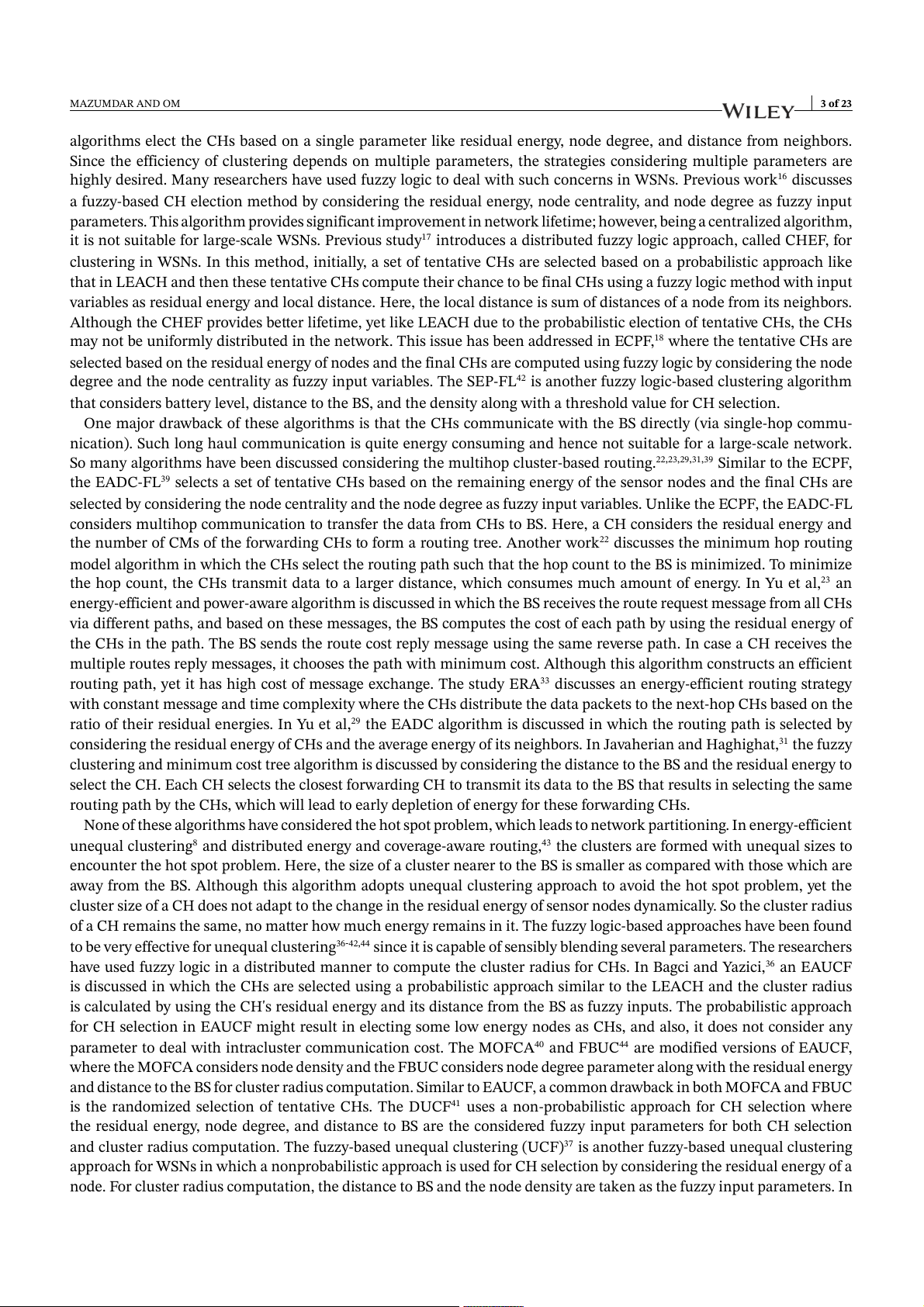 it is not suitable for large-scale WSNs. Previous study17 introduces a distributed fuzzy logic approach, called CHEF, for