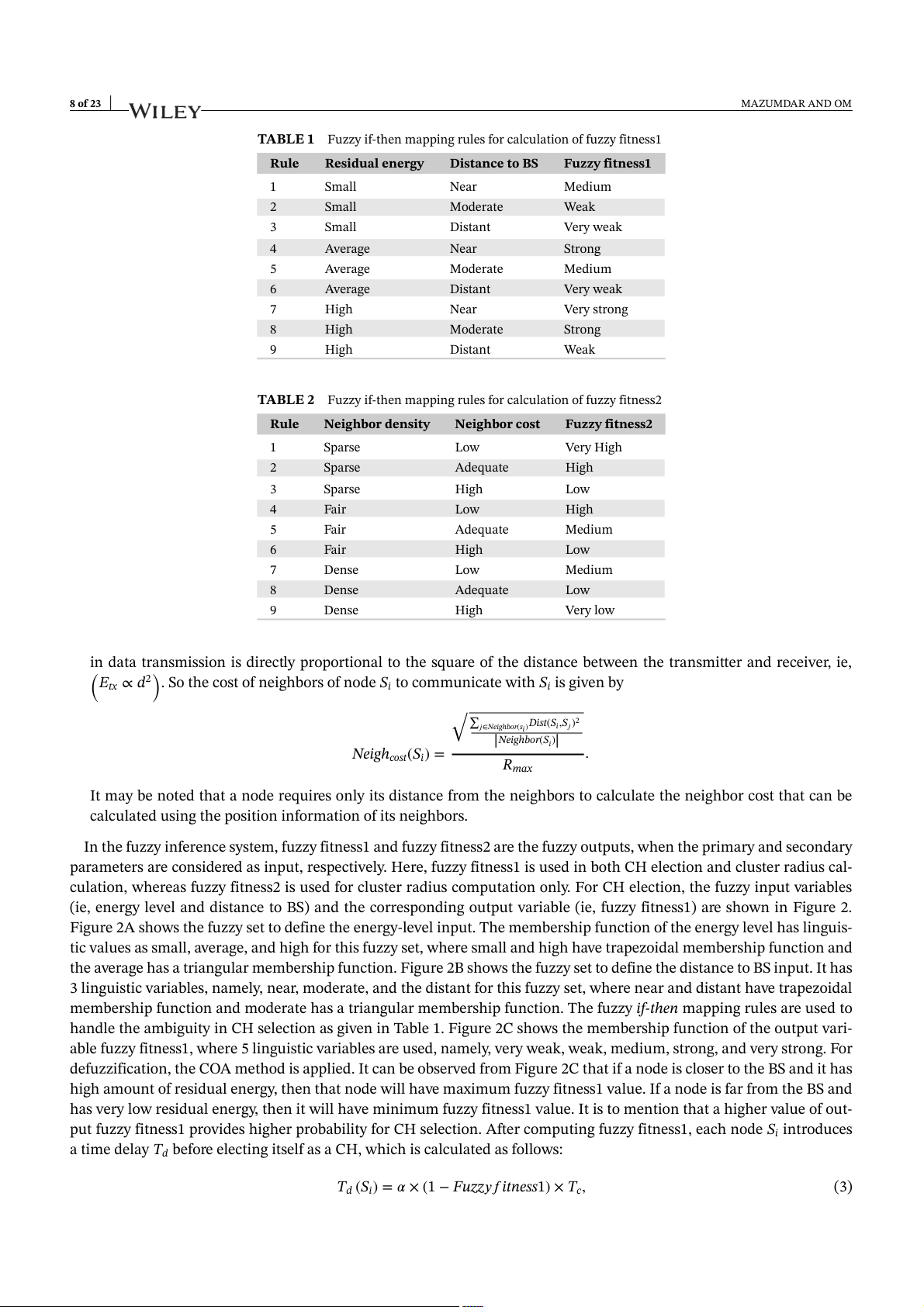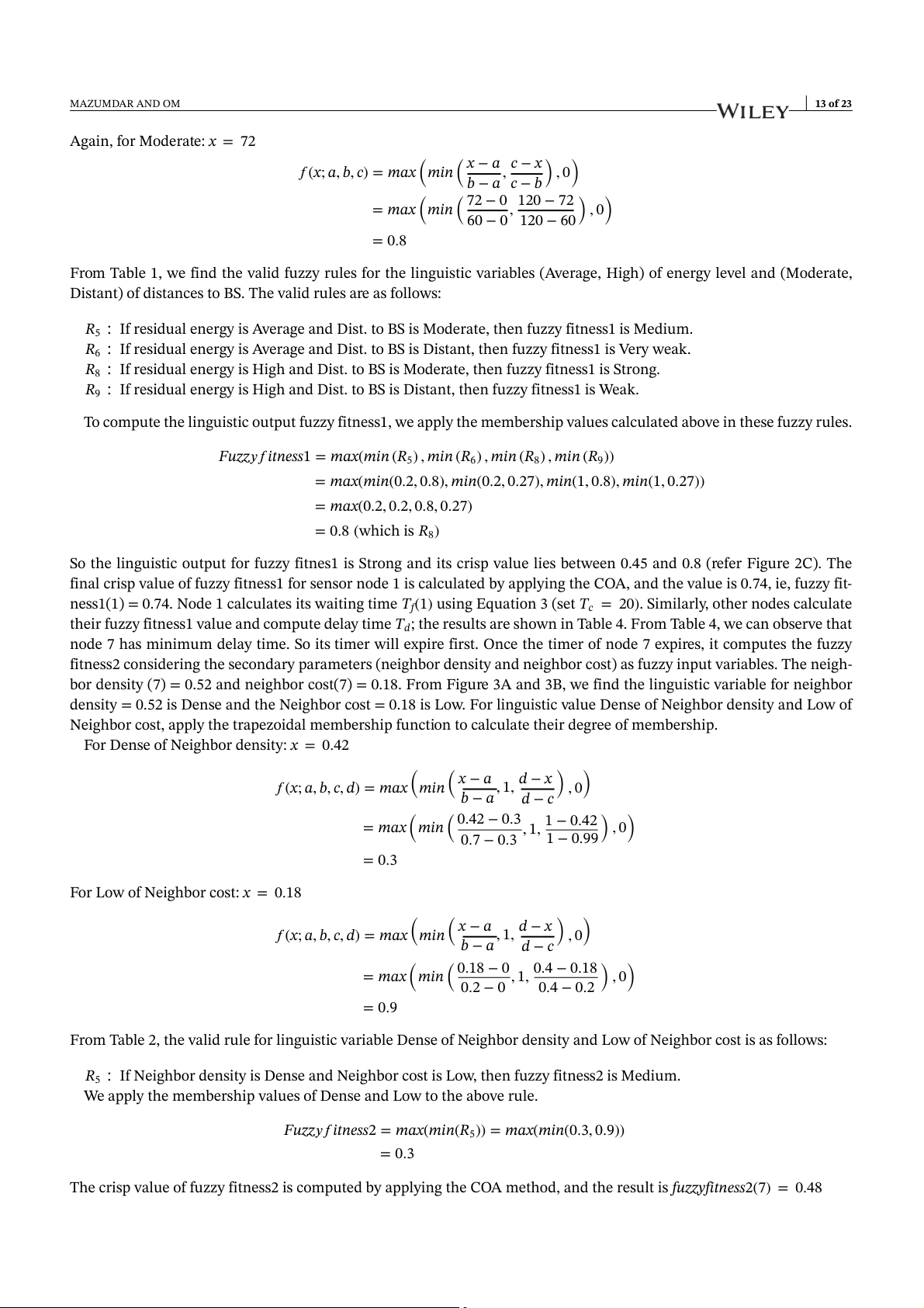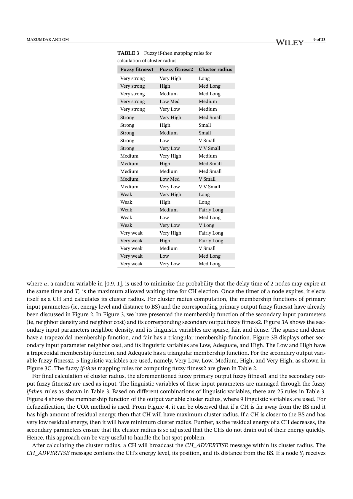 highly desired. Many researchers have used fuzzy logic to deal with such concerns in WSNs. Previous work16 discusses