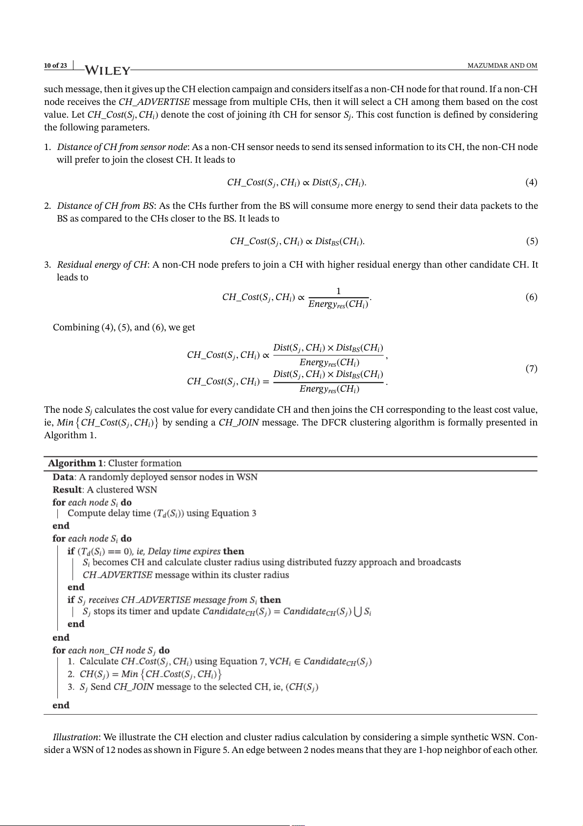 prevent this, the DFCR algorithm rotates the role of CHs among the sensor nodes using Equation 3, which ensures that
