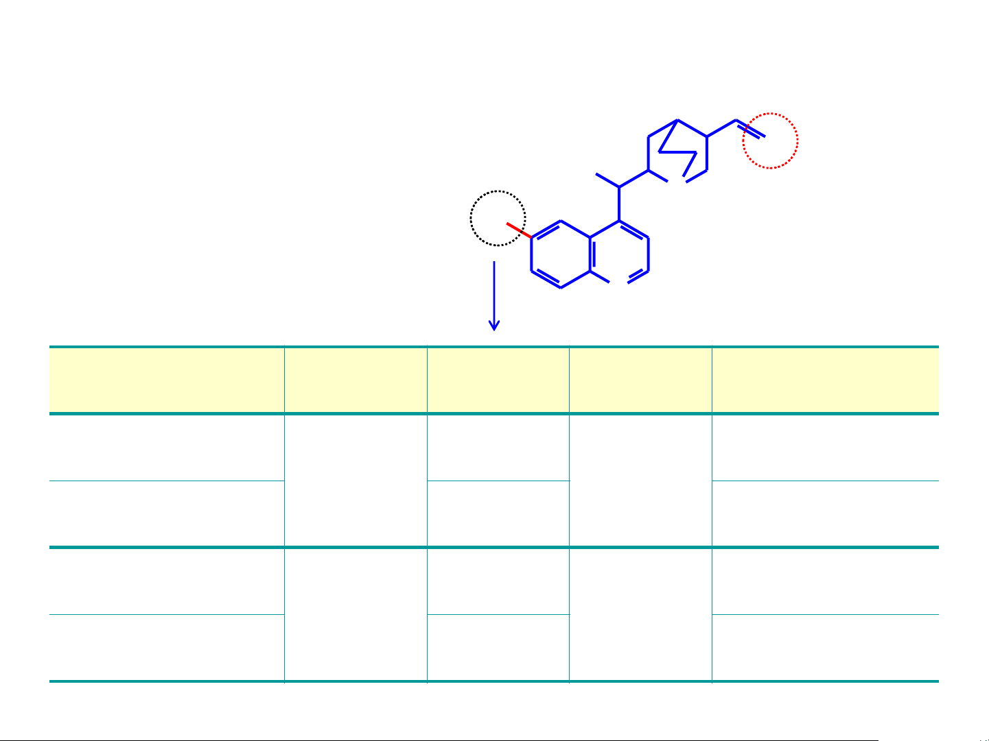 Thành phần hóa học (2) 1. Các alkaloid HO 9 8 N 1.1. alkaloid quinolin* exo-methylen R N alkaloid C* R C* alkaloid l-quinin OMe d-quinidin 8S, 9R 8R, 9S l-cinchonidin H d-cinchonin d-epiquinin OMe d-epiquinidin 8S, 9S 8R, 9R epi-cinchonidin H epi-cinchonin 12