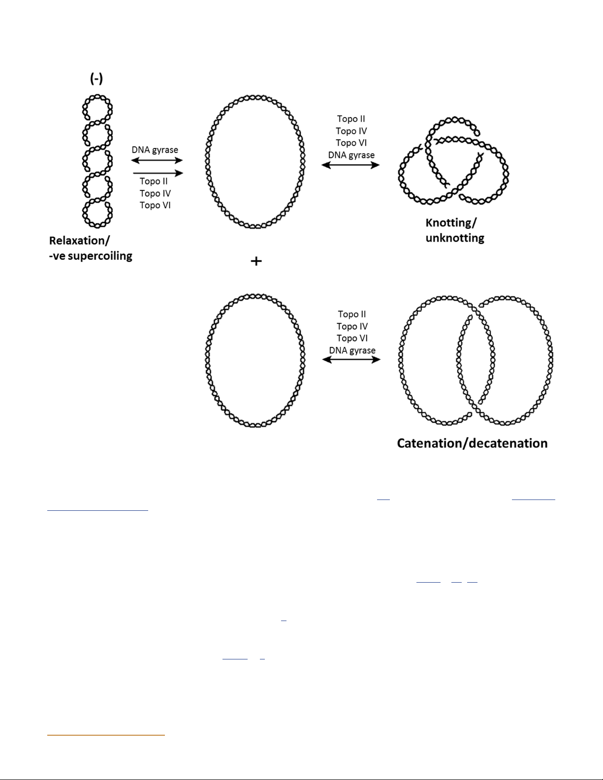 catenation occurs; for illustrative purposes they have been drawn as relaxed. Although only relaxation of negative supercoils is shown, all known