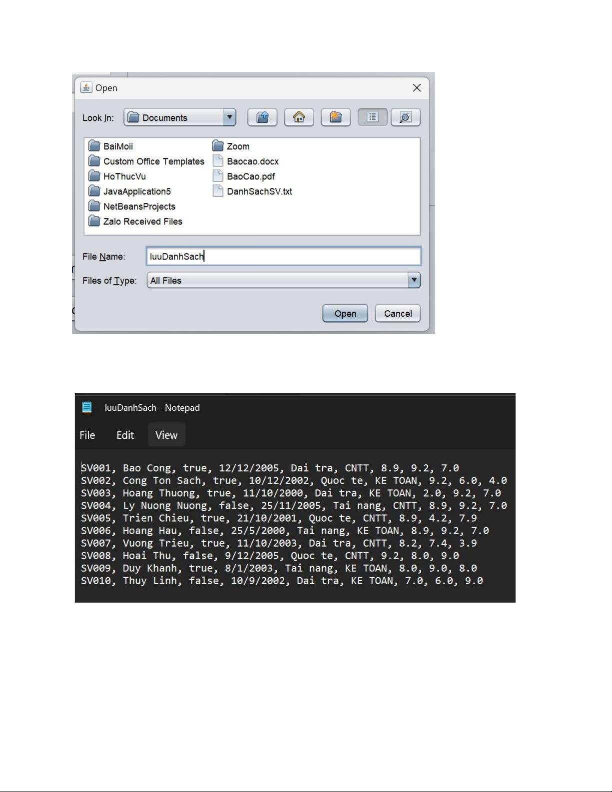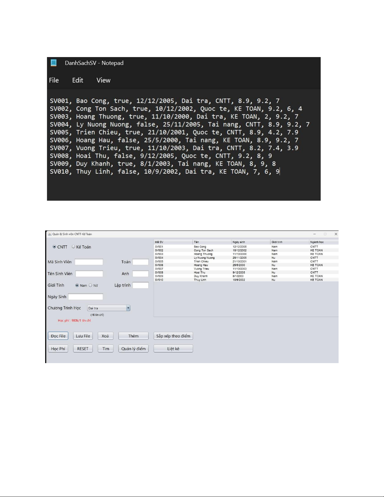 input theo đúng định dạng của method docFile() được button này gọi Nội dung File đọc Hình ảnh sau khi đọc 2.GHI File
