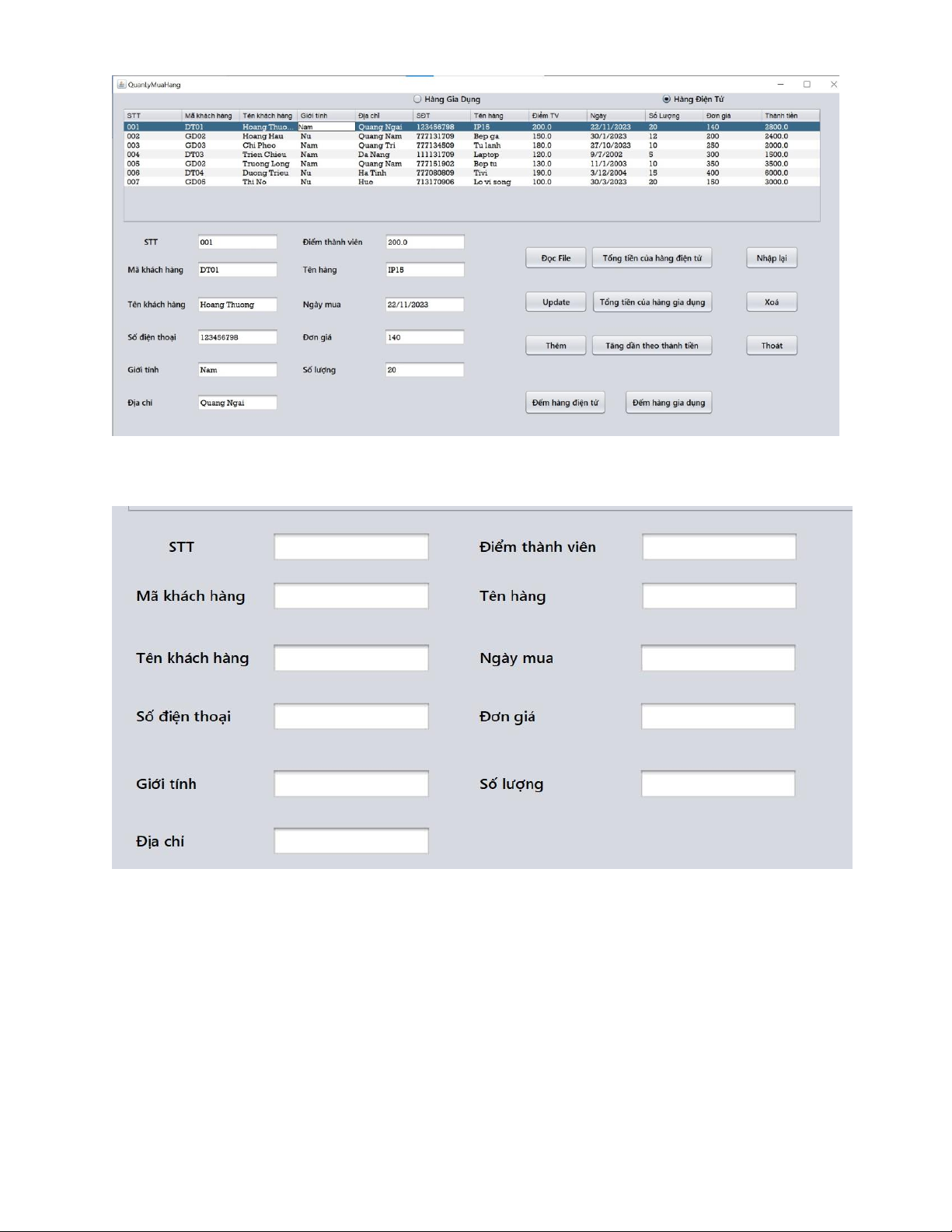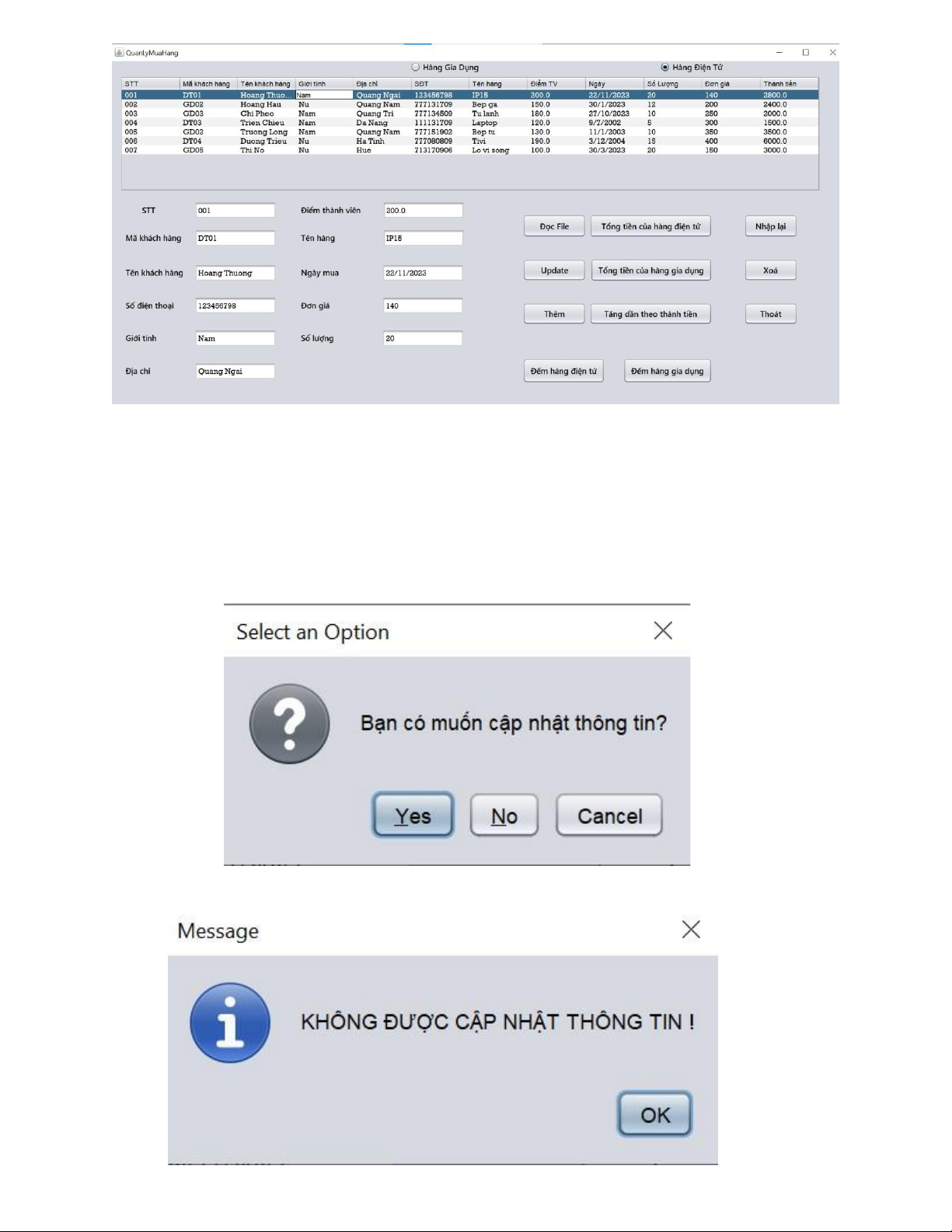 - Sau khi chọn tệp, tệp sẽ được mở và nội dung của tệp sẽ được hiển thị ra giao diện chính. b. Update: - Thay đổi thông tin