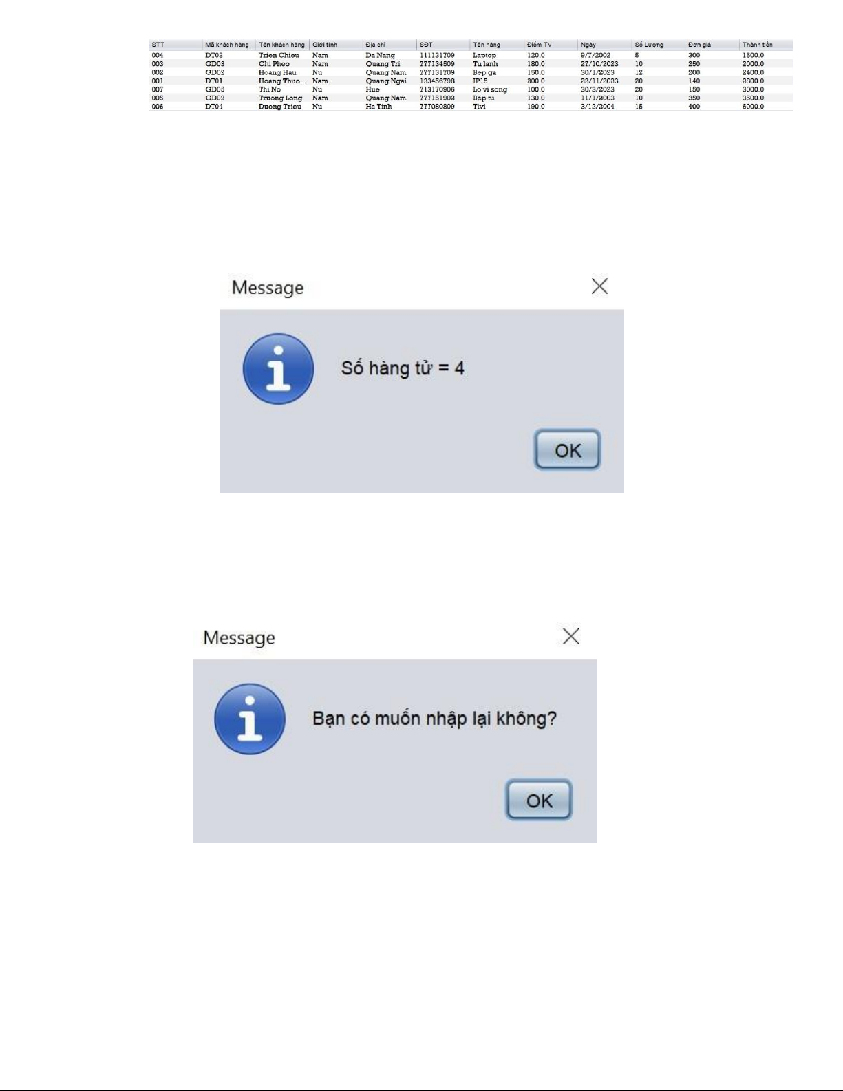 - In tổng tiền của các hàng điện tử ra cửa sổ thông báo