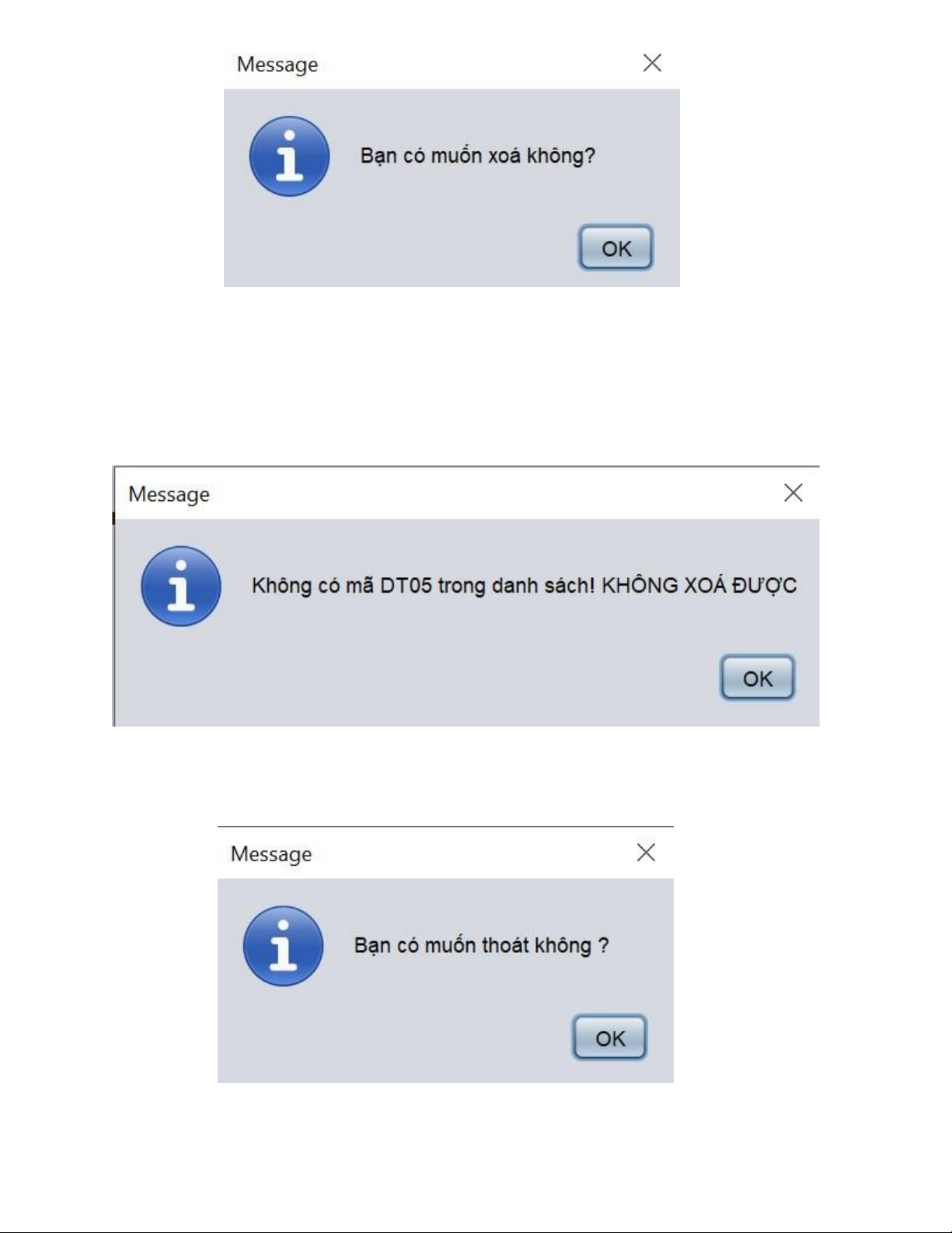 + Nhấn “OK”, việc xoá thông tin sẽ được thực hiện.