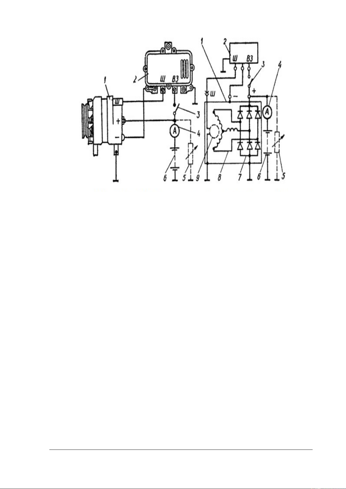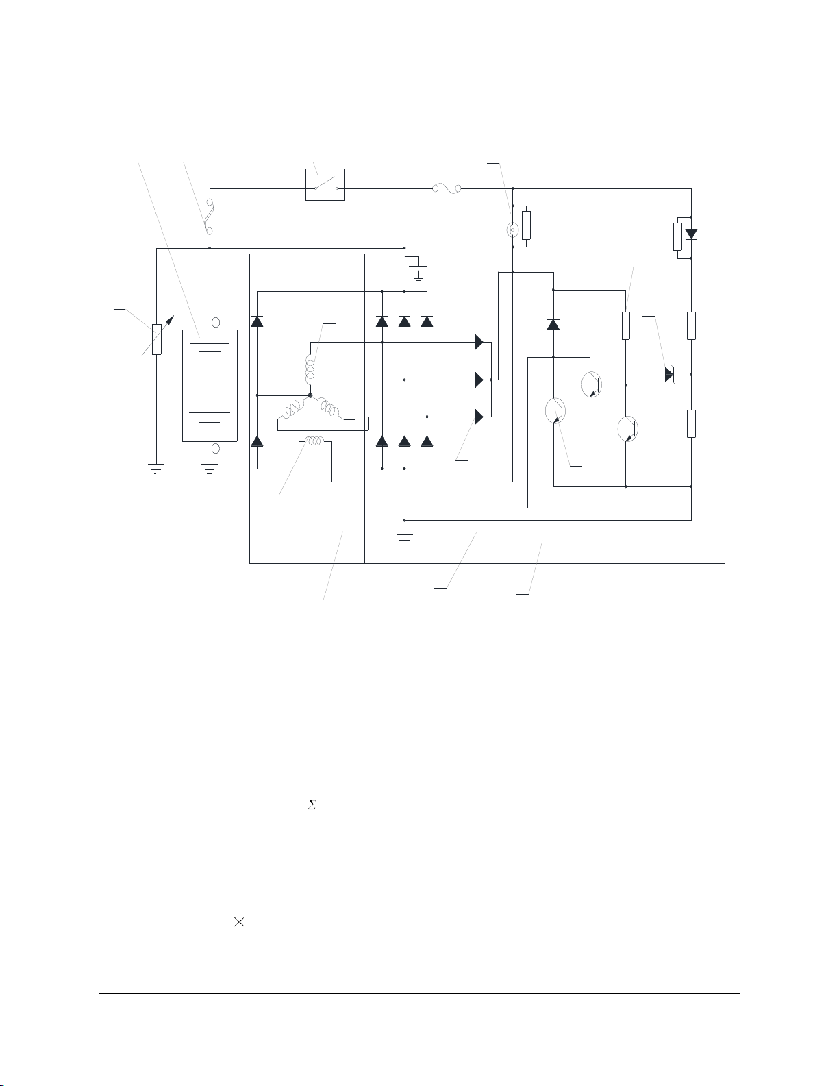 Điện trở; 8-Transitor; 9-Điot chỉnh lưu; 10-Cuộn dây stator; 11-Cuộn dây rotor; I-Máy