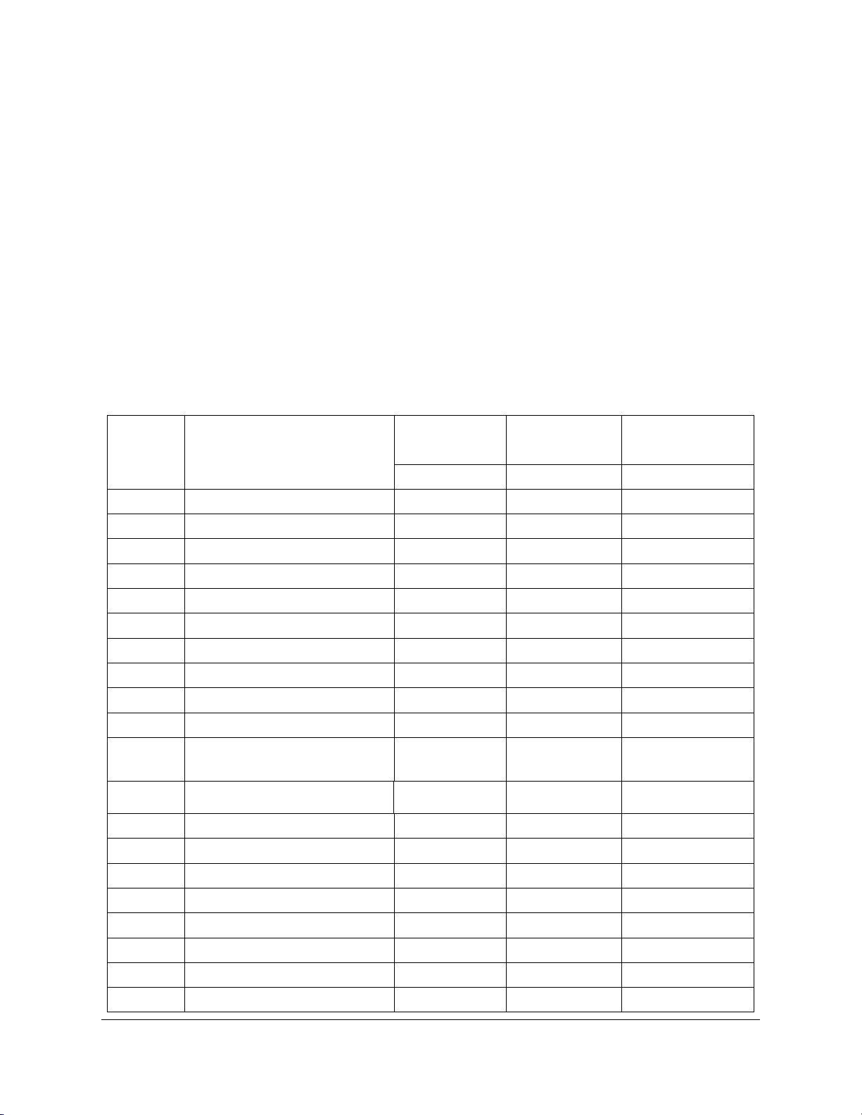 Công suất Hệ số sử Công suất STT Tên phụ tải thực dụng tương đương [W] λ [W] 1 Radio 35 0,3 10,5 2 Đèn Taplô 55 0,5 27,5 3 Đèn kích thước xe 4x12 0,5 24 4 Đèn đỗ xe 4x4 0,1 1,6 5 Đèn biển số 2x10 0,5 10 6 Đèn cốt 2x55 0,5 55 7 Đèn pha 2x60 0,5 60 8 Đèn báo rẽ 4x23 0,1 9,2 9 Đèn Stop 2x22 0,5 22 10 Đèn trần 2x5 0,2 2 11 Motor nâng/hạ kính 4x35 0,1 14 12 Quạt điều hòa 2x70 0,6 84 13 Sấy kính 120 0,1 12 14 Motor rửa kính 60 0,3 18 15 Còi 40 0,4 16 16 Đèn sương mù 2x30 0,1 6 17 Đèn lùi 2x24 0,1 4,8 18 Motor gạt mưa 70 0,3 21 19 Motor khởi động 1200 0,1 120 20 Quạt làm mát động cơ 2x120 0,9 216 18