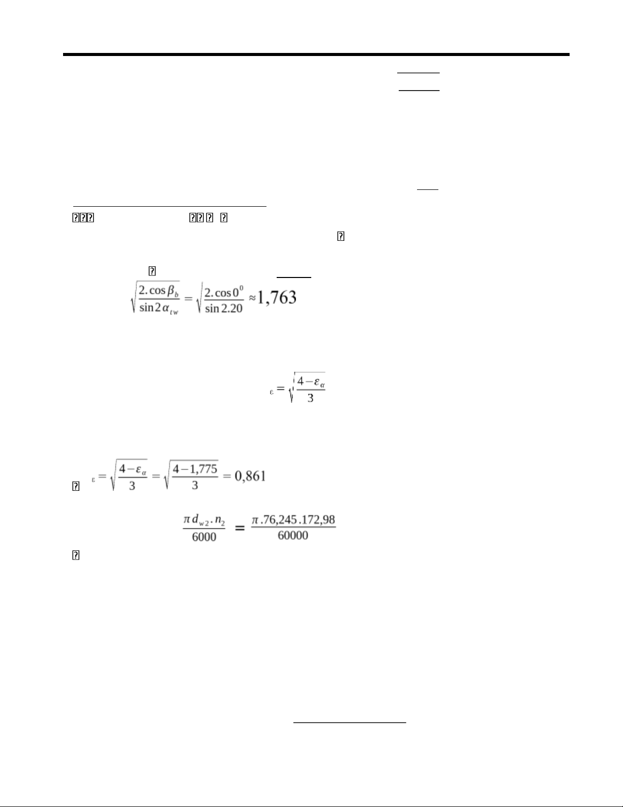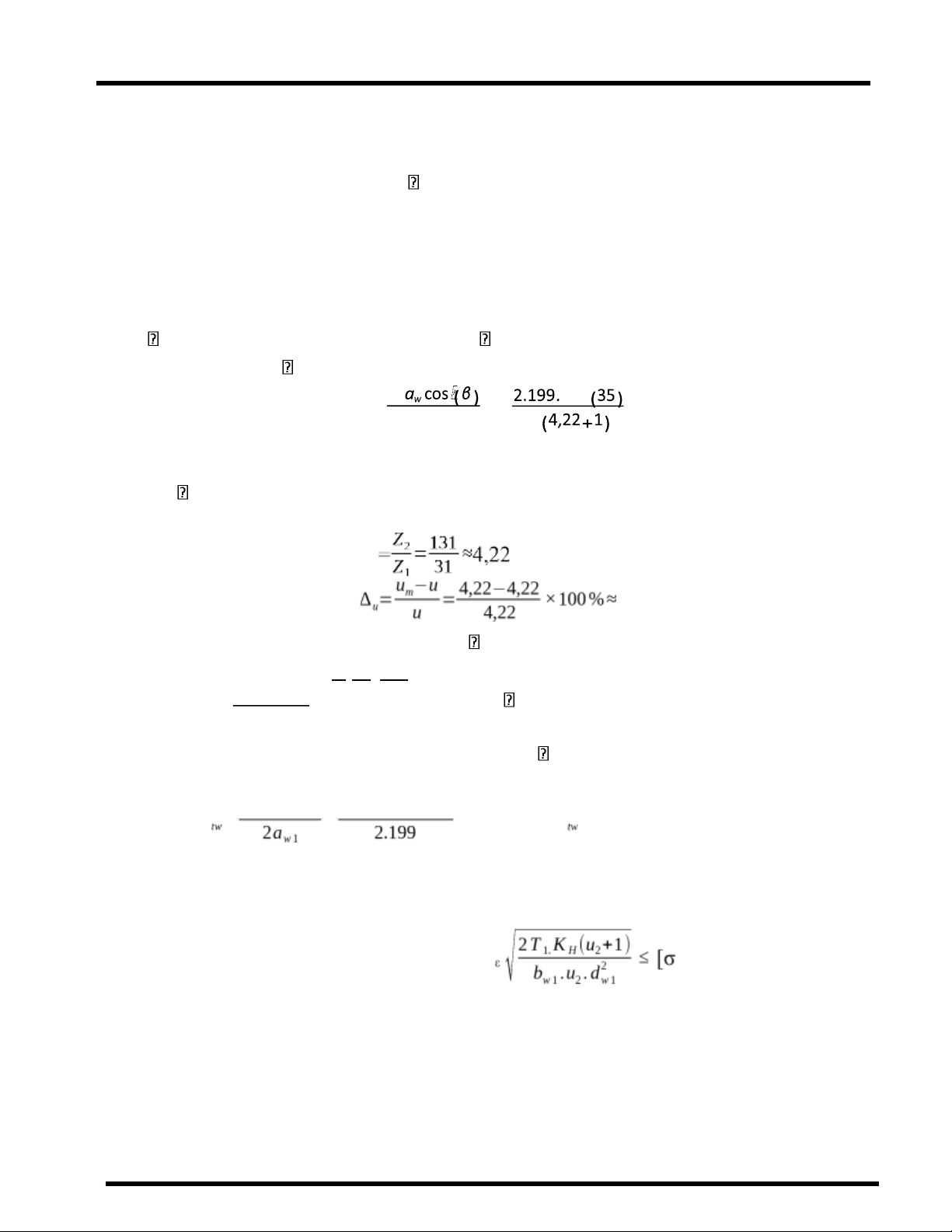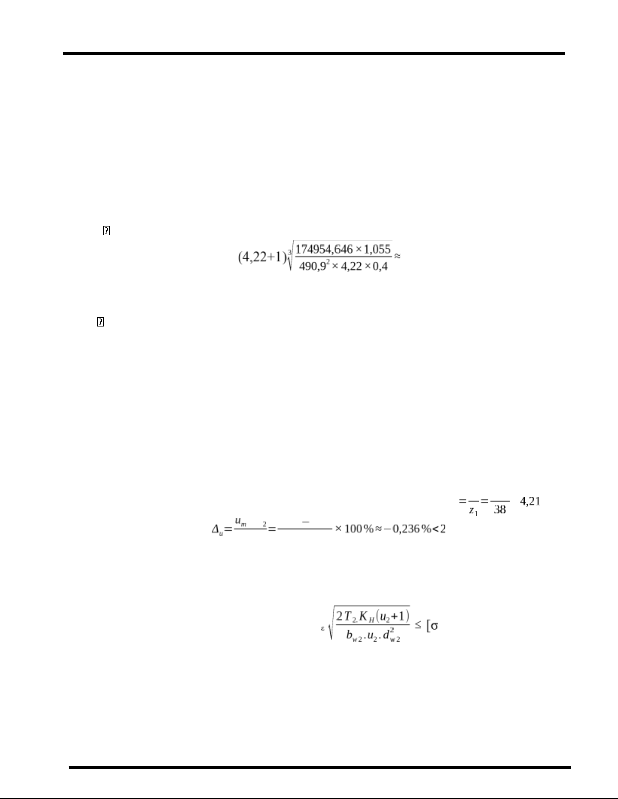 Tỉ số truyền thực tế: um   ≈   −u  4,21  4,22    Sai lệch tỉ số truyền  u2  4,22  % (thỏa mãn)