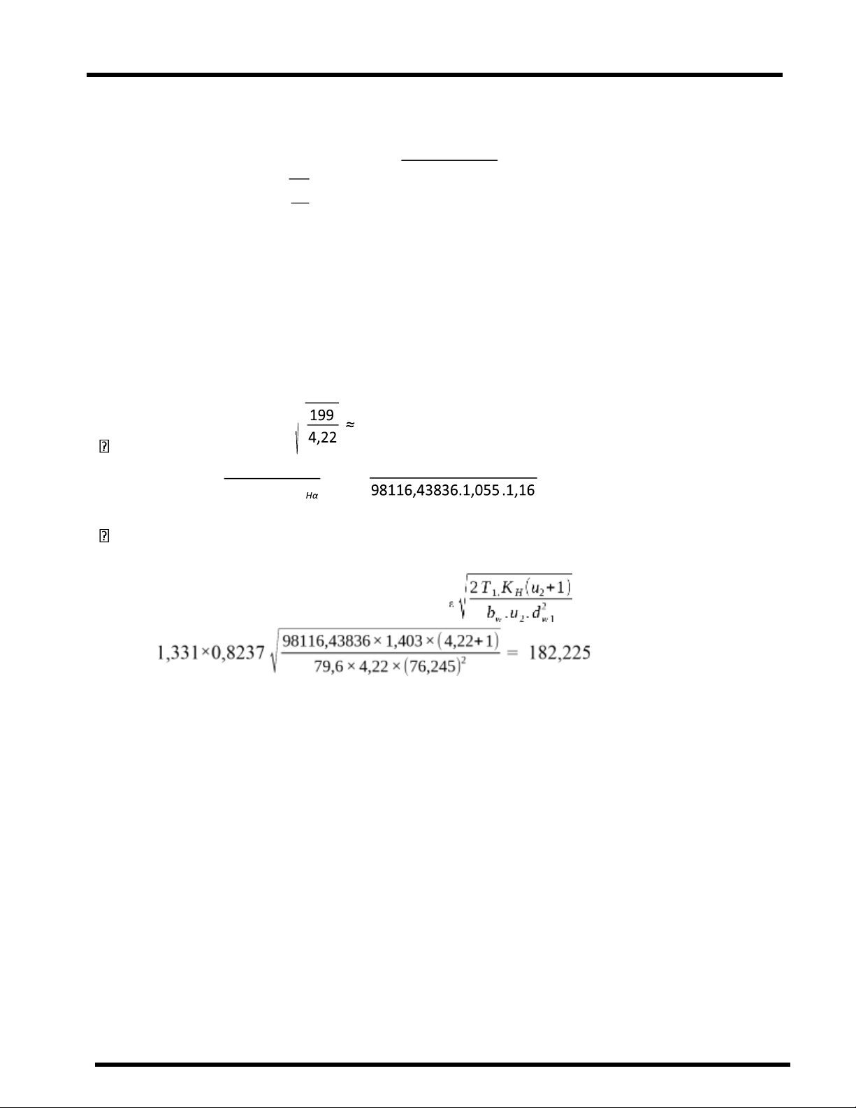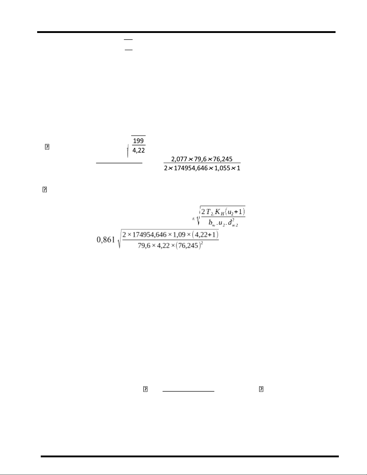 Chiều rộng vành răng : bw = 79,6 mm  Tỷ số truyền : u = 4,22