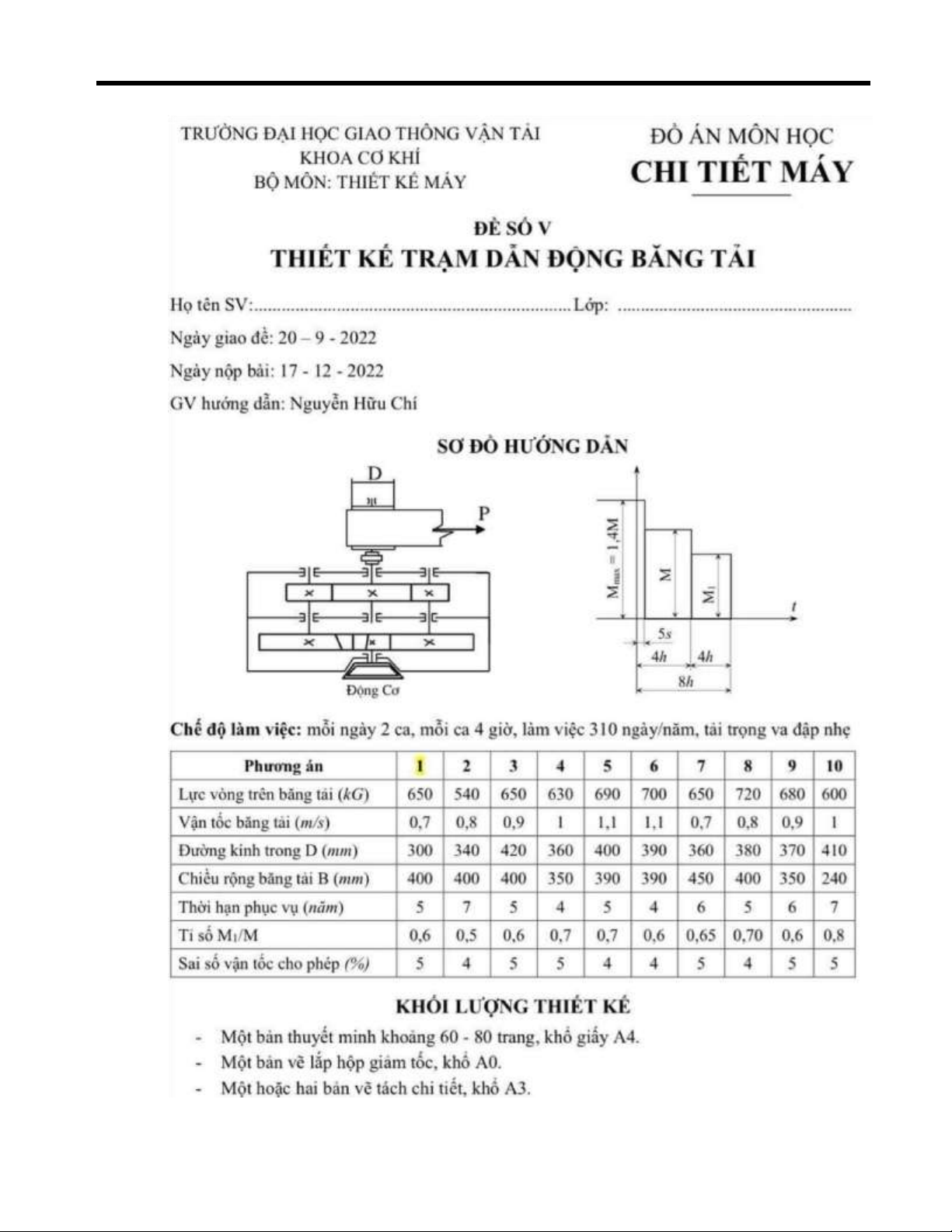 Đề số: V - Phương án: 3  TP.HCM -  Tháng 12/2022      Trang 2      lOMoAR cPSD| 58833082  BM : THIẾT KẾ MÁY    Trang 3      lOMoAR cPSD| 58833082  BM : THIẾT KẾ MÁY  LỜI NÓI ĐẦU
