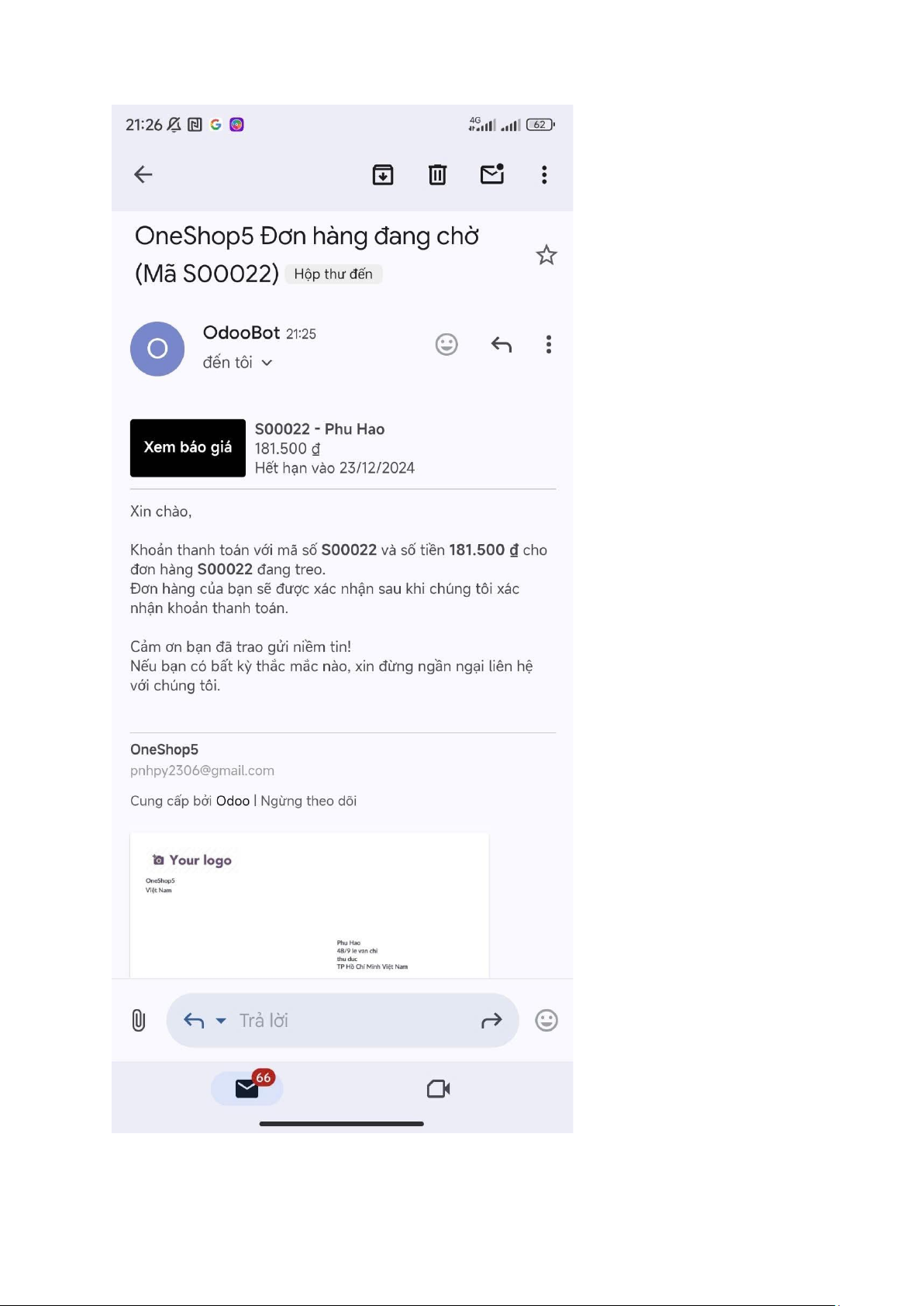 Sau khi thanh toán thành công, khách hàng sẽ nhận được email thông báo