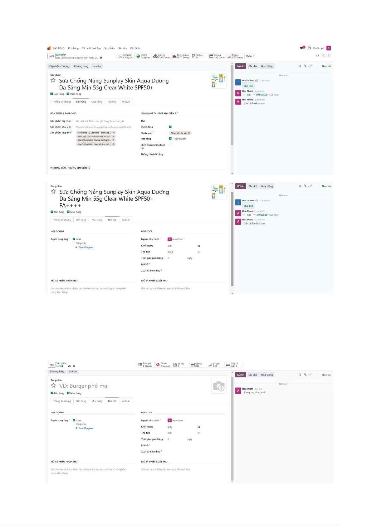 gồm thông tin chung, thông tin bán hàng, quản lý tồn kho,...). Ngoài ra còn