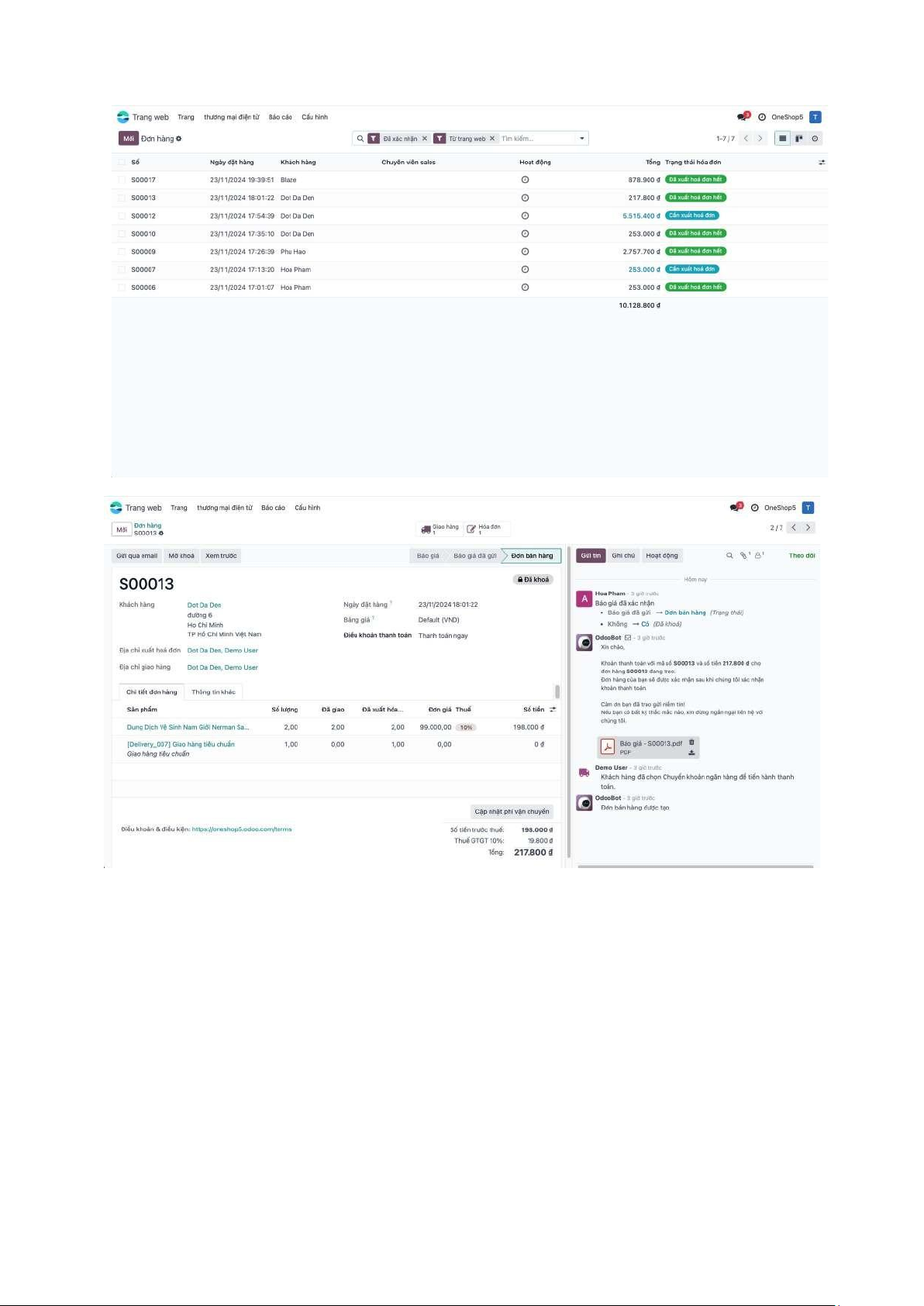 web, bấm chọn vào 1 đơn hàng có thể xem chi tiết thông tin về đơn hàng