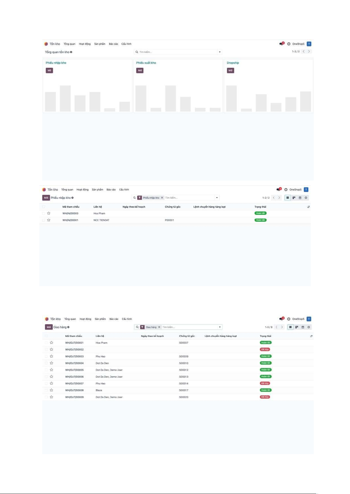nhập kho đã tạo, trạng thái của các phiếu nhập. lOMoAR cPSD| 61159950