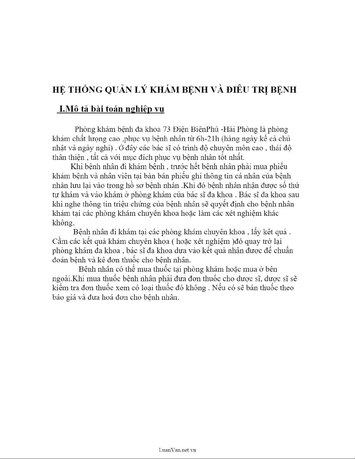 Đồ án Hệ thống quản lý khám bệnh và điều trị bệnh Môn Phân tích thiết kế hệ thống. Tài liệu được sưu tầm gồm 18 trang, giúp bạn ôn tập tốt hơn. Mời các bạn đón xem.