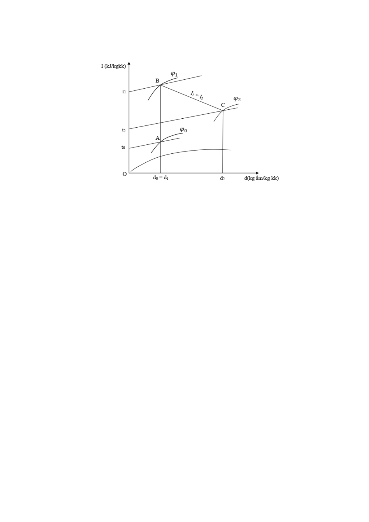 thuyết (I1= I2), trạng thái không khí ở đầu ra của thiết bị sấy là C(t2, φ2).