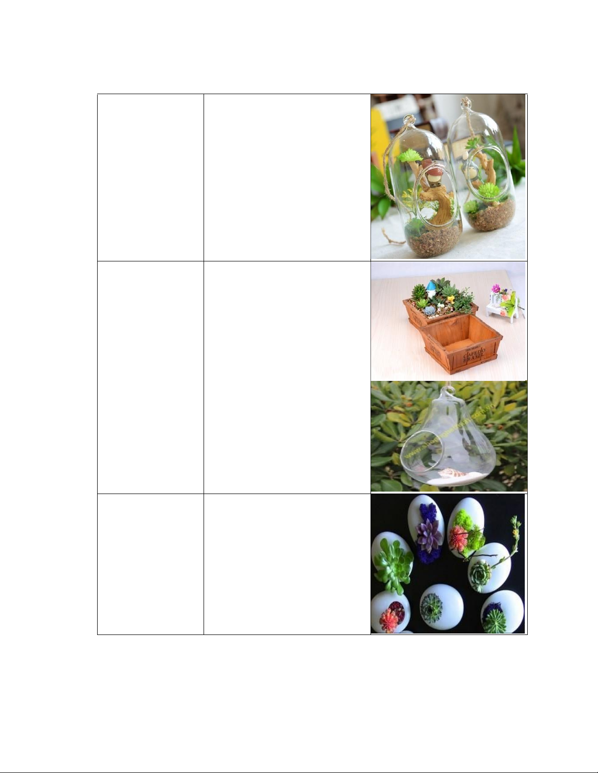 Bảng 1.Mô tả sản phẩm Chậu terrarium 150.000-300.000 hoàn thiện Chậu gốm/thủy 40.000-70.000 tinh Cây cảnh mini,hạt 30.000-50.000 giống lOMoAR cPSD| 58490434 Phụ kiện trang trí 5.000-10.000 Dụng cụ trồng cây 30.000-50.000 Đất dinh dưỡng 35.000/10kg