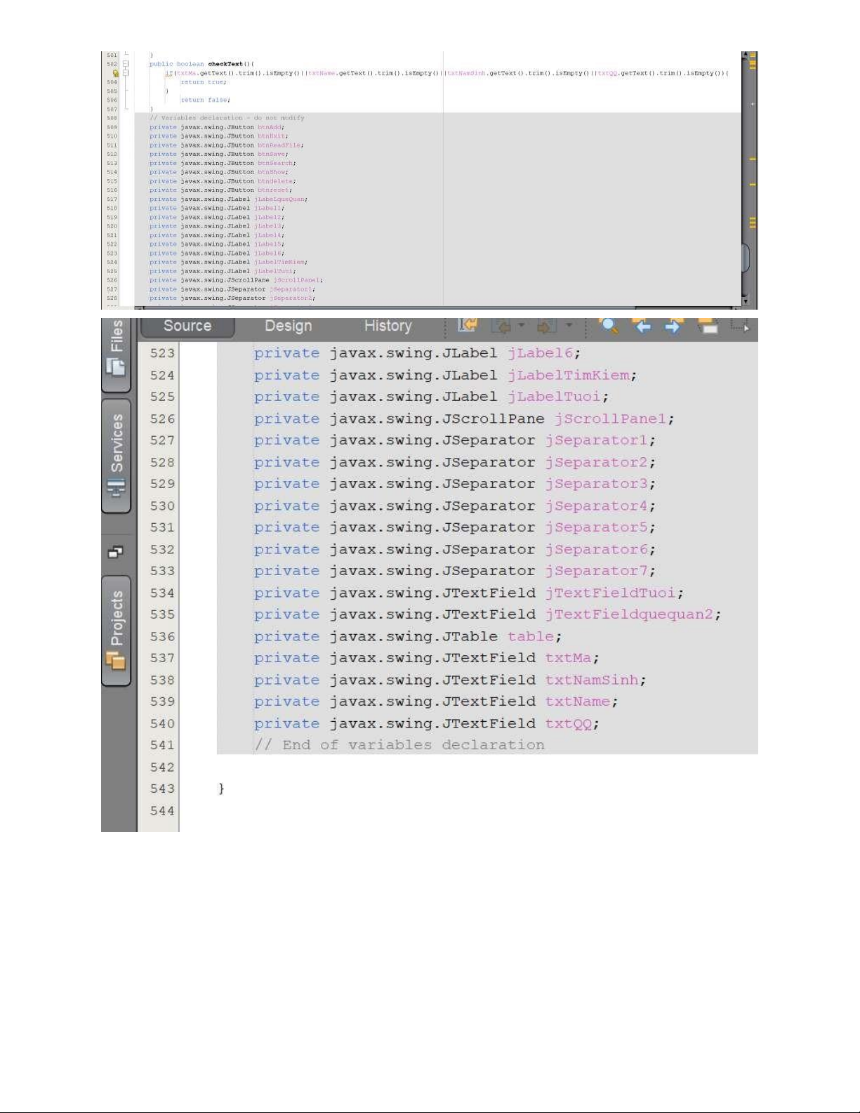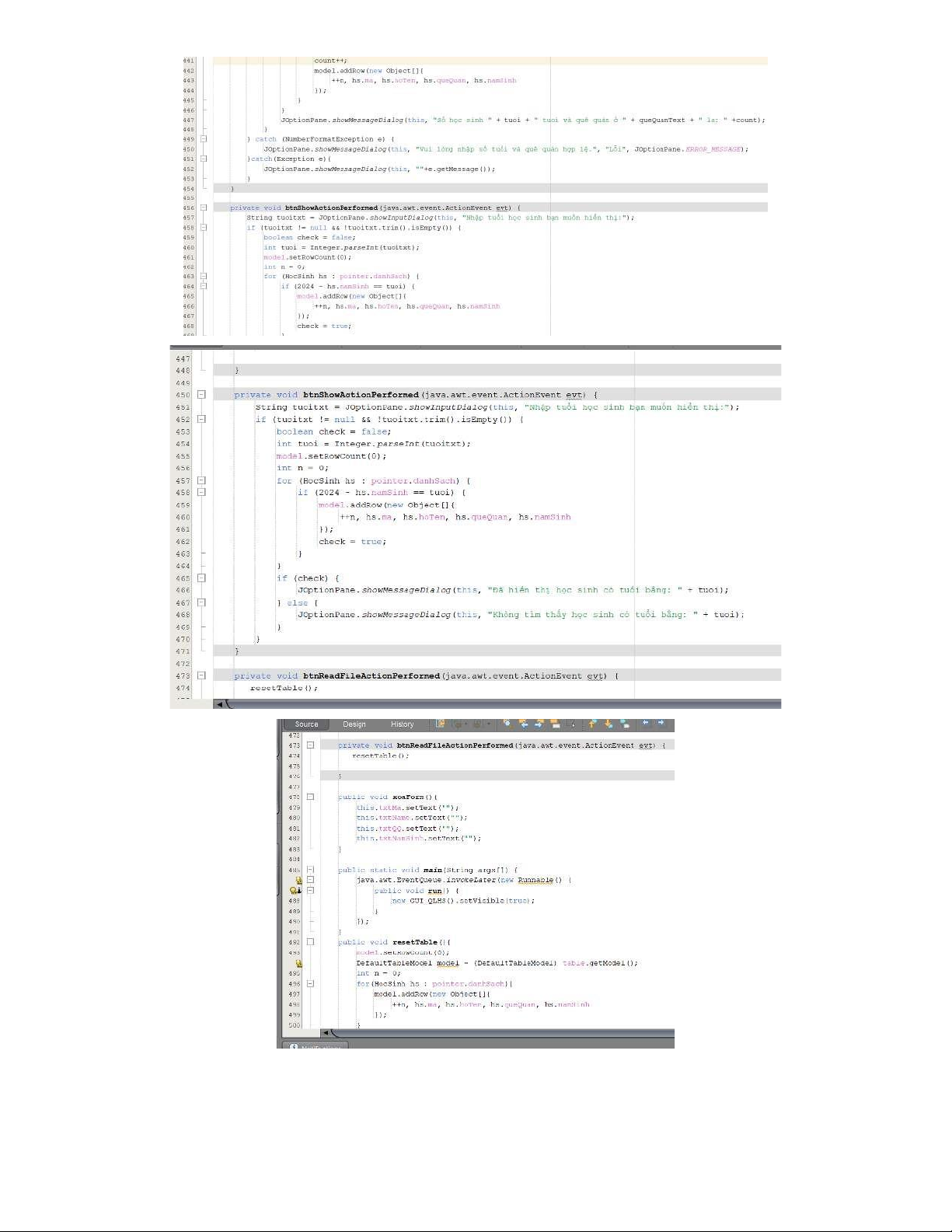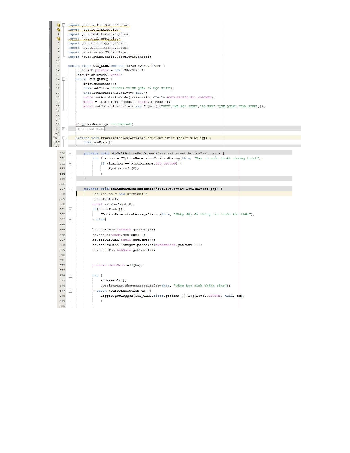 Hình 4. Hình code trong NeaBeans lớp HSHocSinh c. Lớp GUI_QLHS Tên lớp : GUI_QLHS.java