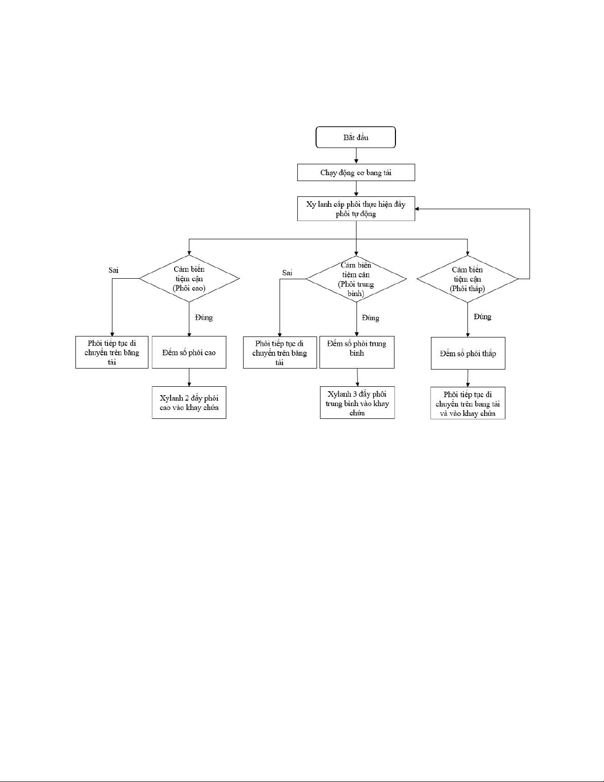 dùng phương pháp loại trừ để phân loại. Khi cảm biến phát hiện ra sản phẩm với chiều
