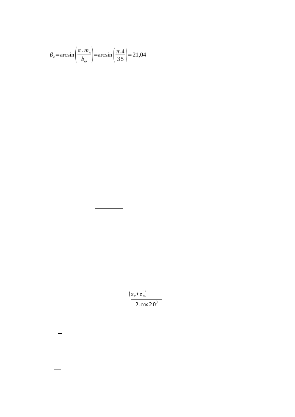→ góc β được xác định:  π .mn  β ) ε=arcsin(  bω   Với modun mn = 4,5 (mm).