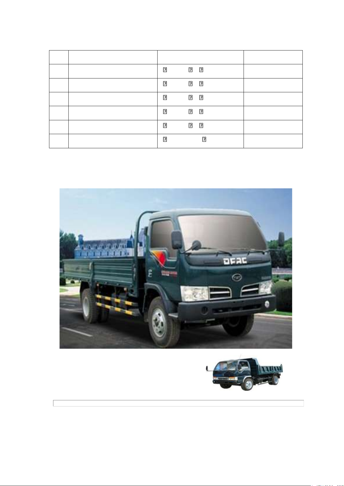 Kích thước bao (DxRxC) (mm)  7070x2180x3620  Chiều dài cơ sở (mm)  3800    Công thức bánh xe  4x2  3      lOMoAR cPSD| 58833082   Cỡ lốp  8.25-16  2