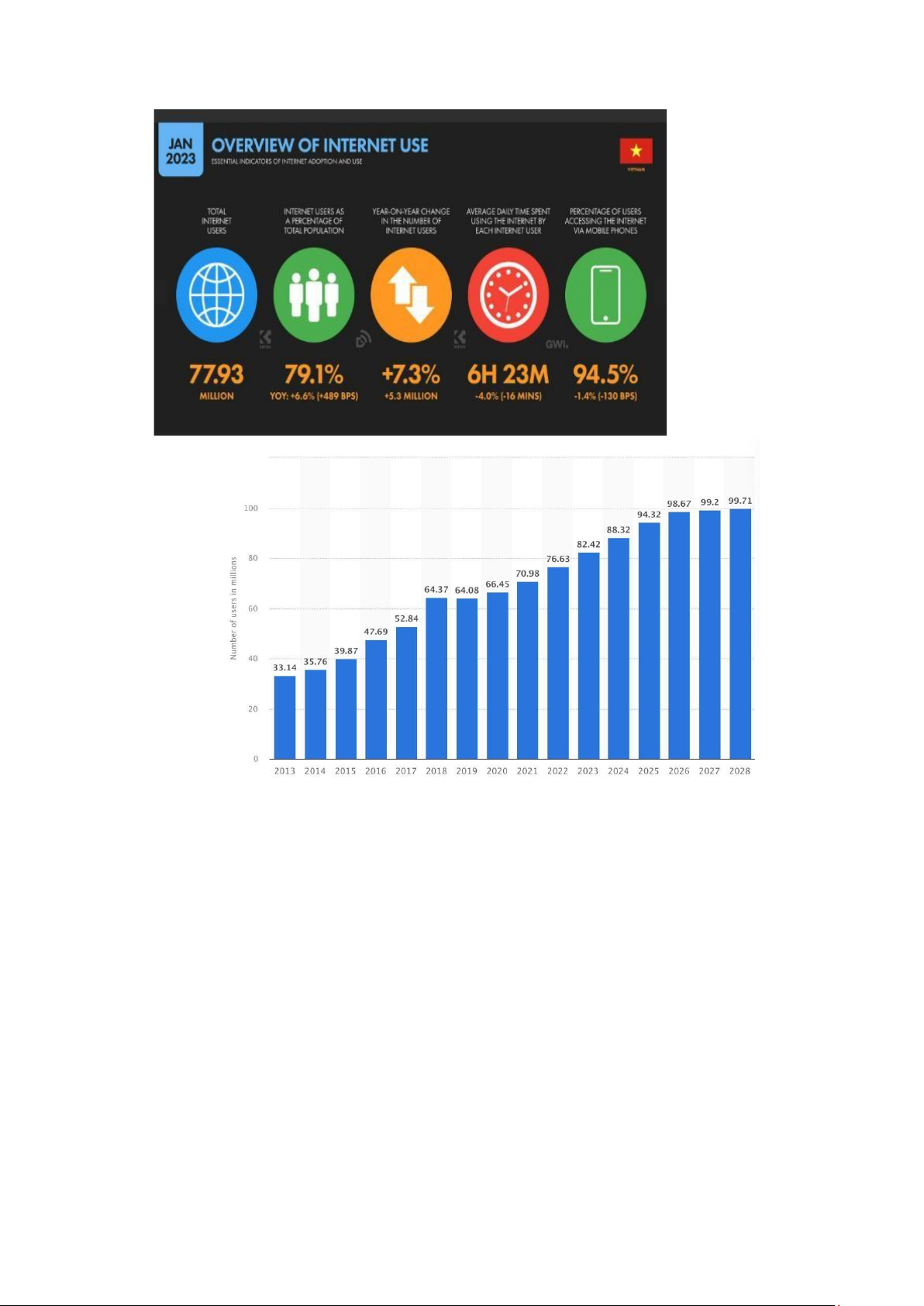 so với năm 2022 số lượng người dùng Internet tại Việt Nam đã tăng thêm 5,3 triệu