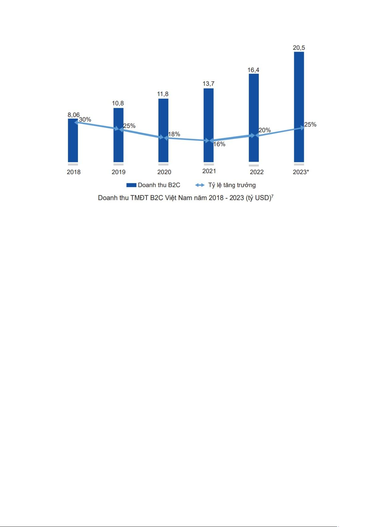 Hình 6: Doanh thu TMĐT B2C Việt Nam 2018-2023