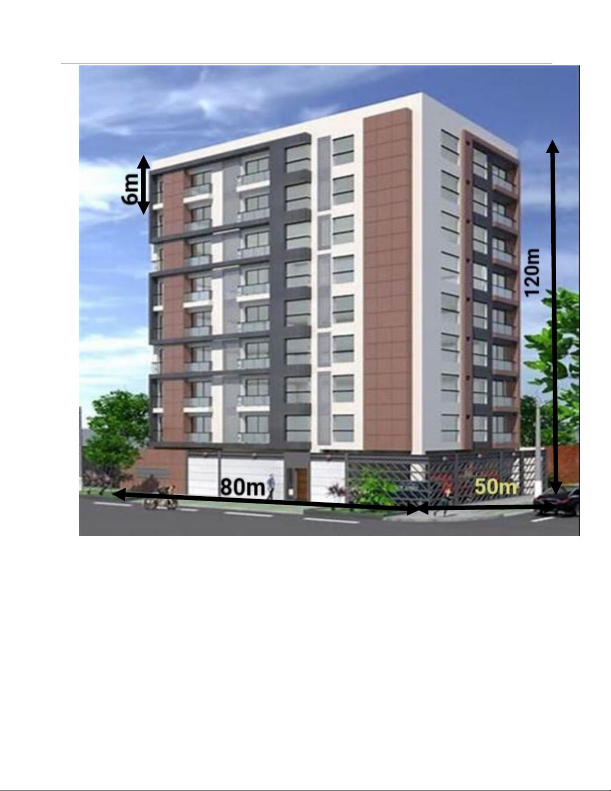 - Tòa nhà 20 tầng, rộng 50m, dài 80m, cao 120m  - Mỗi tầng cao 6m