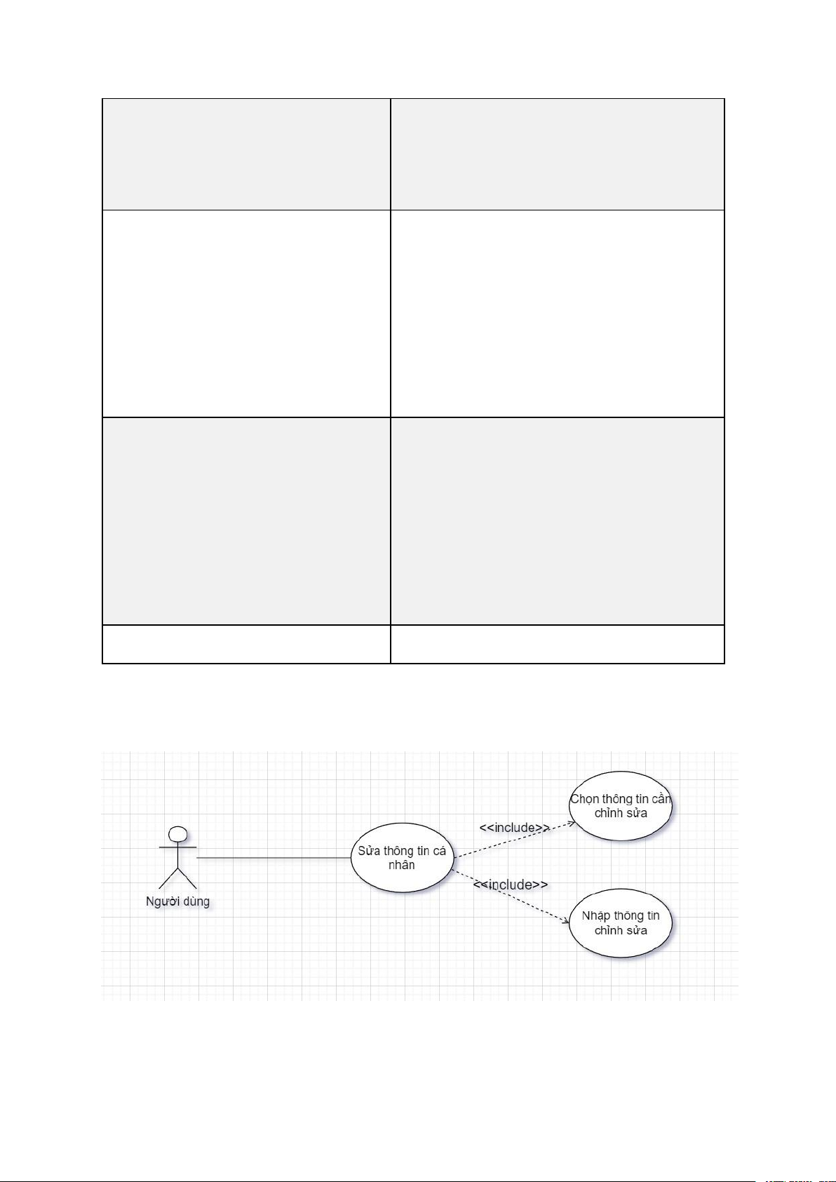 Bảng 4. Bảng usecase sửa thông tin cá nhân Tên Usecase Sửa thông tin cá nhân Actor Người dùng. Mô tả