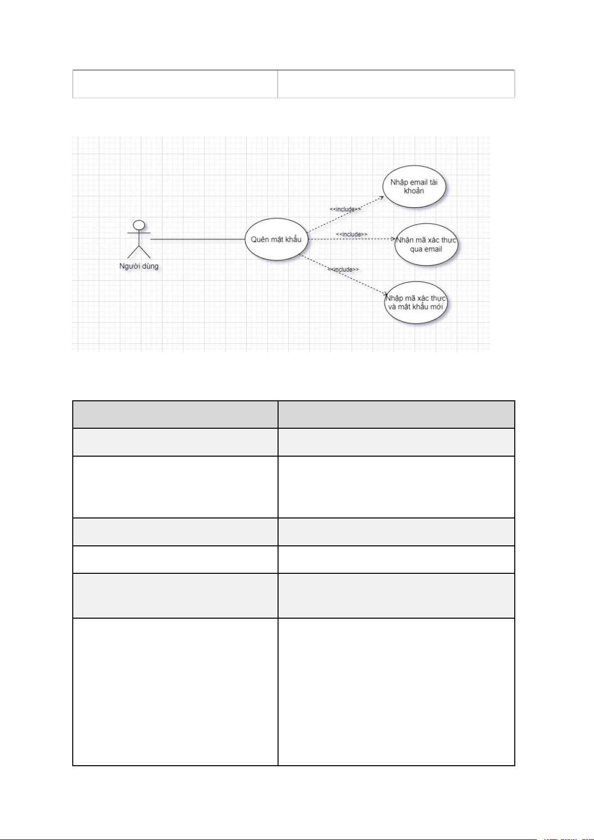 Bảng 5. Usecase Quên mật khẩu Tên Usecase Quên mật khẩu Actor Người dùng. Mô tả