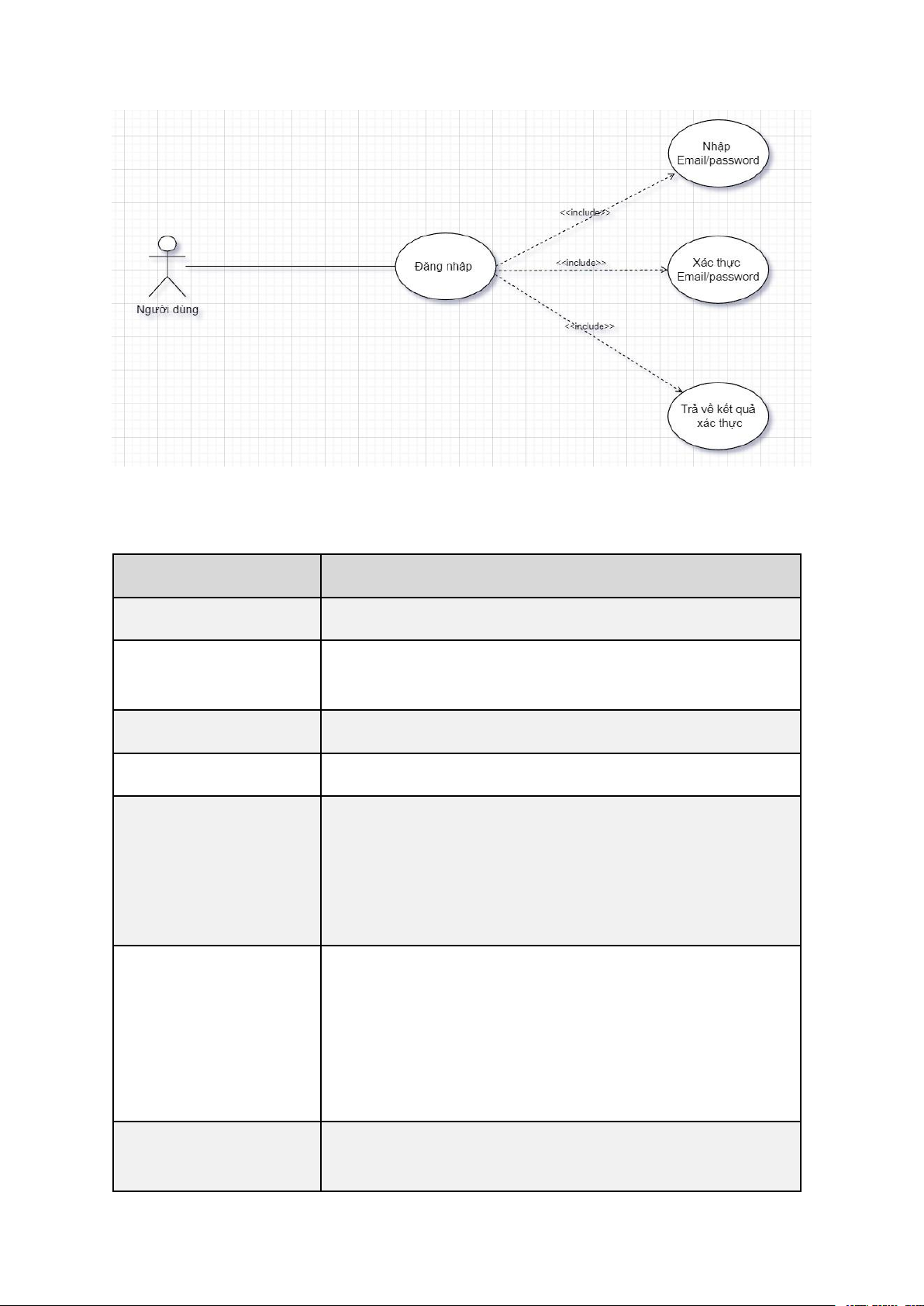 Bảng 2. Bảng usecase Đăng nhập Tên usecase Đăng nhập Actor Người dùng. Mô tả