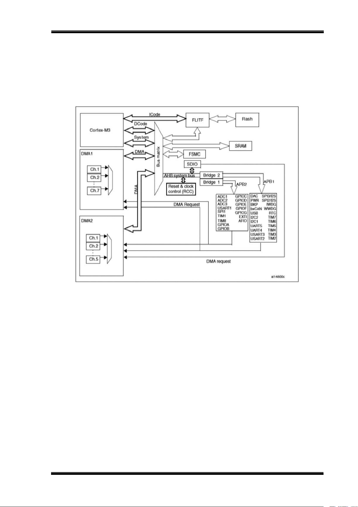 • System bus: Kết nối lõi Cortex™-M3 với BusMatrix và BusMatrix sẽ phân