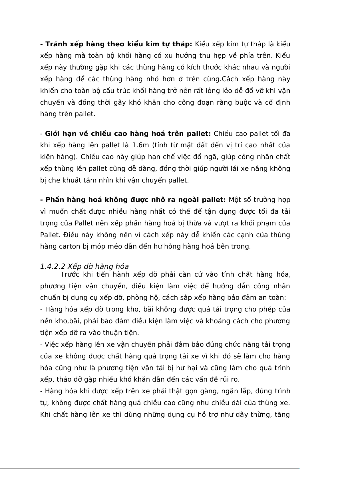 trọng của Pallet nên xếp phần hàng hoá bị thừa và vượt ra khỏi phạm của