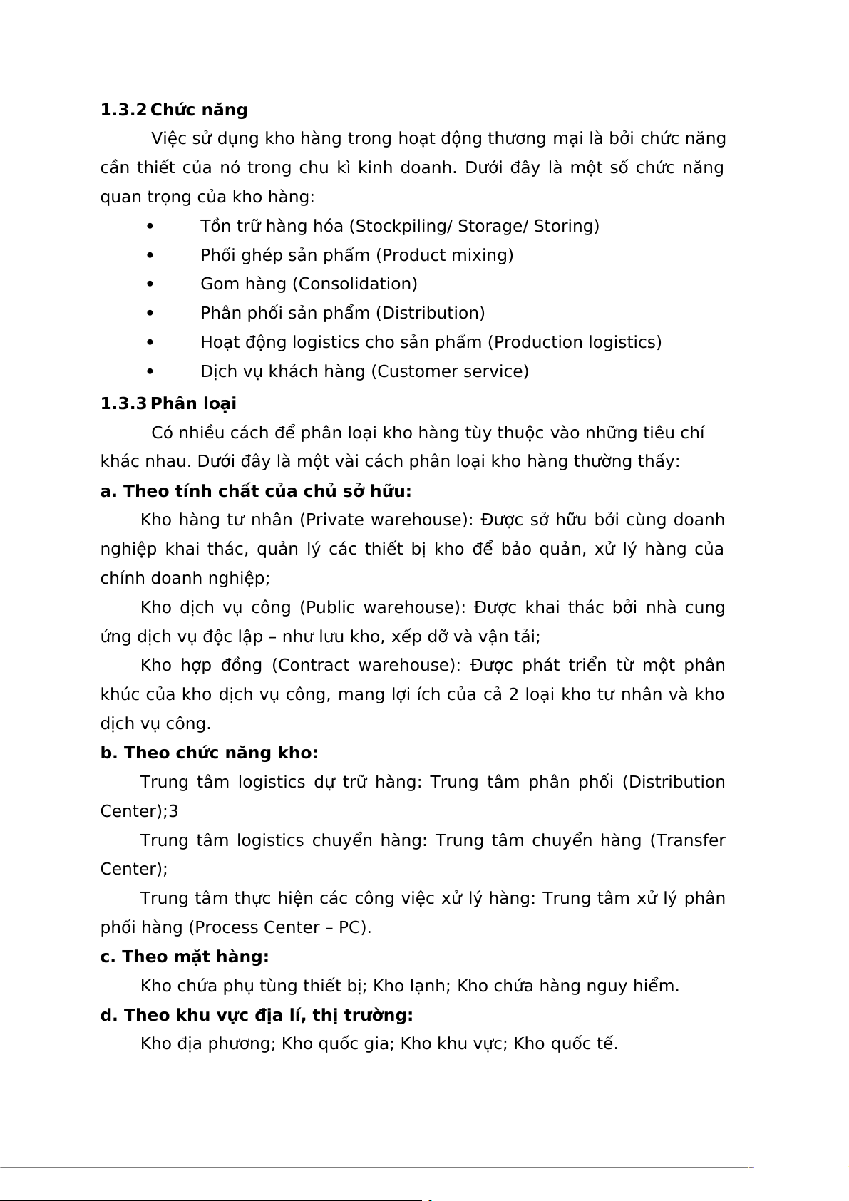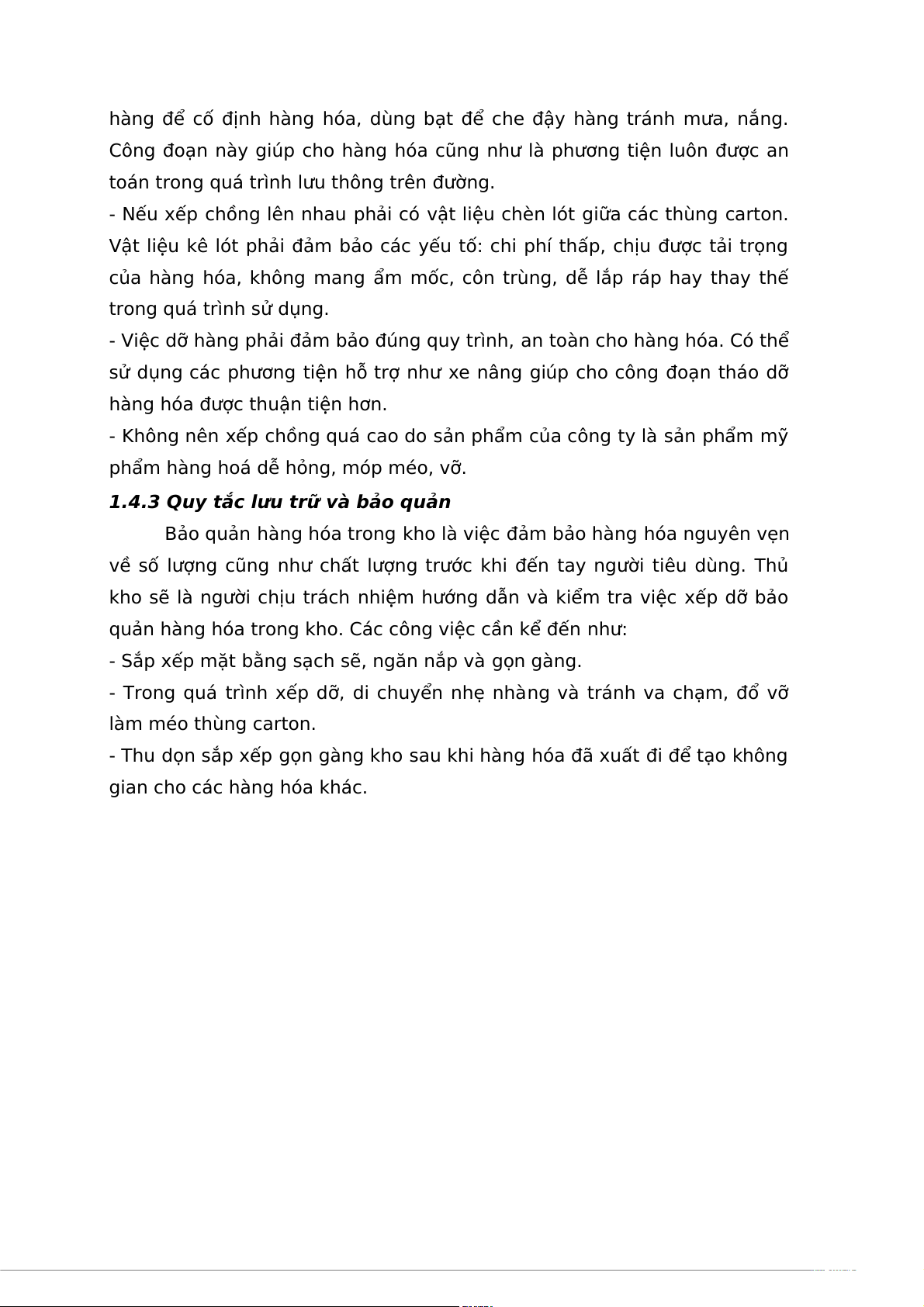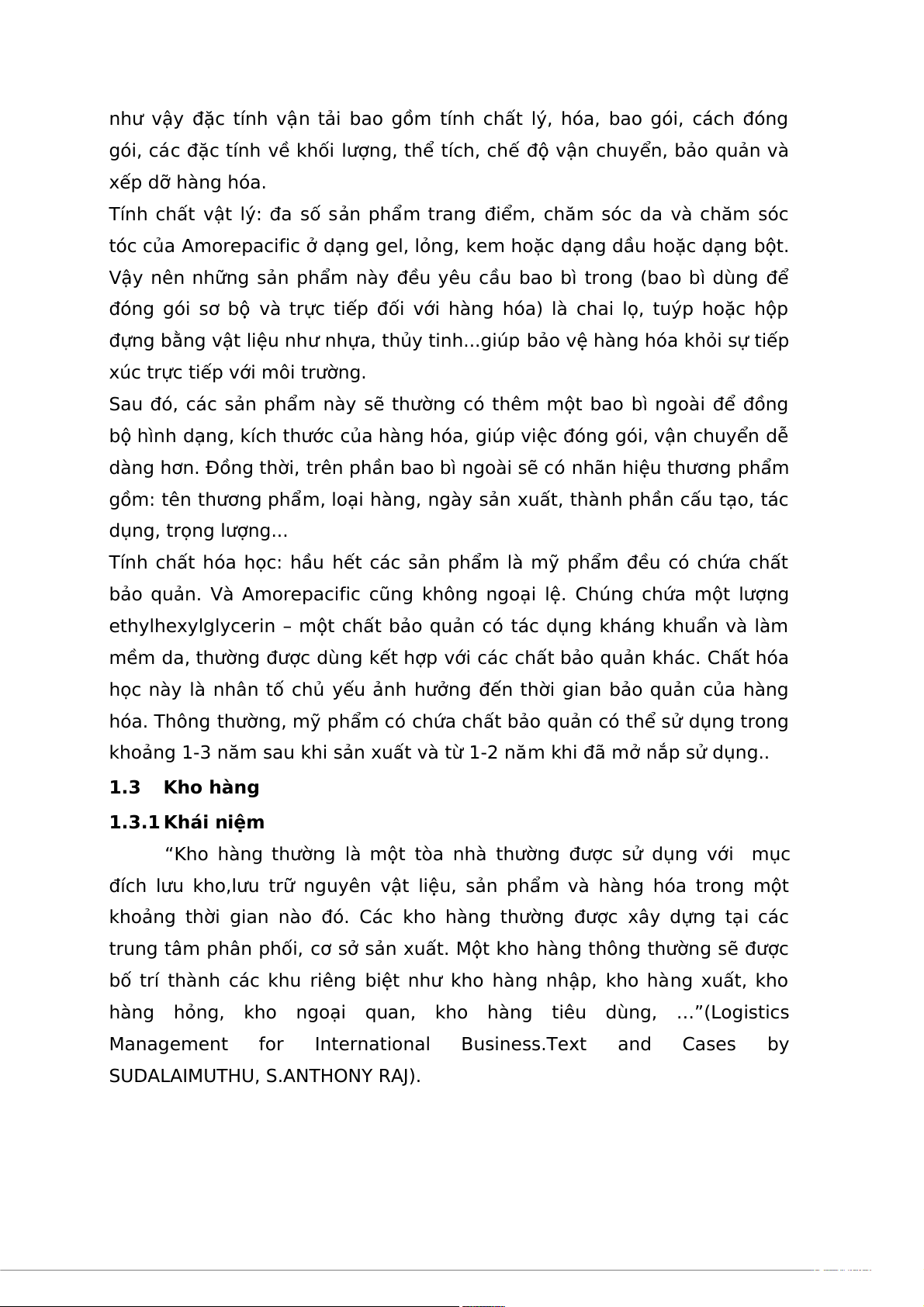 khoảng 1-3 năm sau khi sản xuất và từ 1-2 năm khi đã mở nắp sử dụng.. 1.3 Kho hàng 1.3.1 Khái niệm