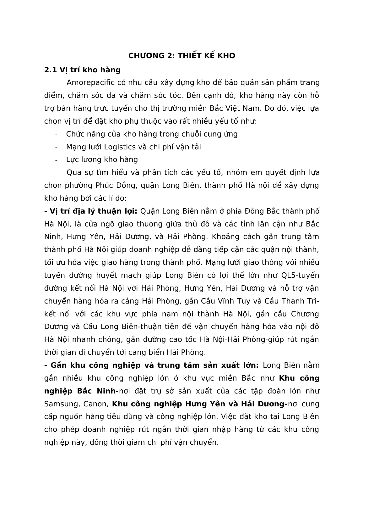 CHƯƠNG 2: THIẾT KẾ KHO 2.1 Vị trí kho hàng