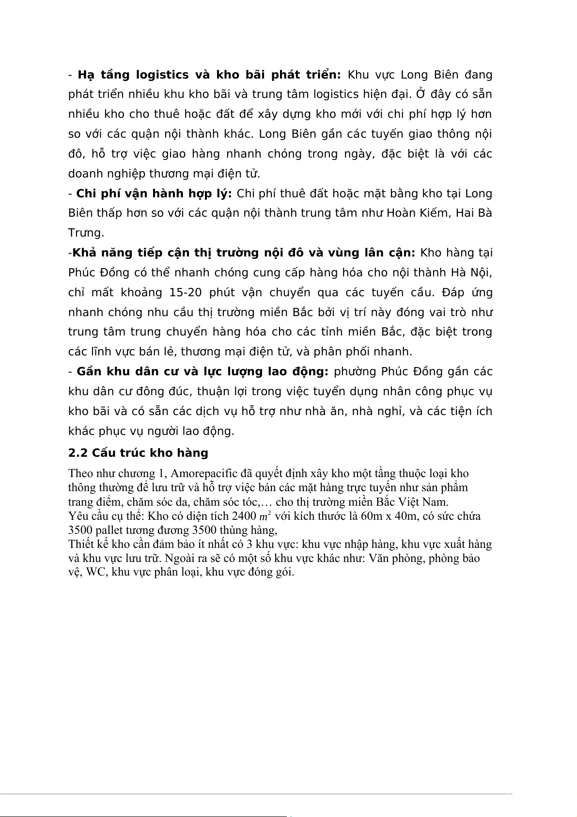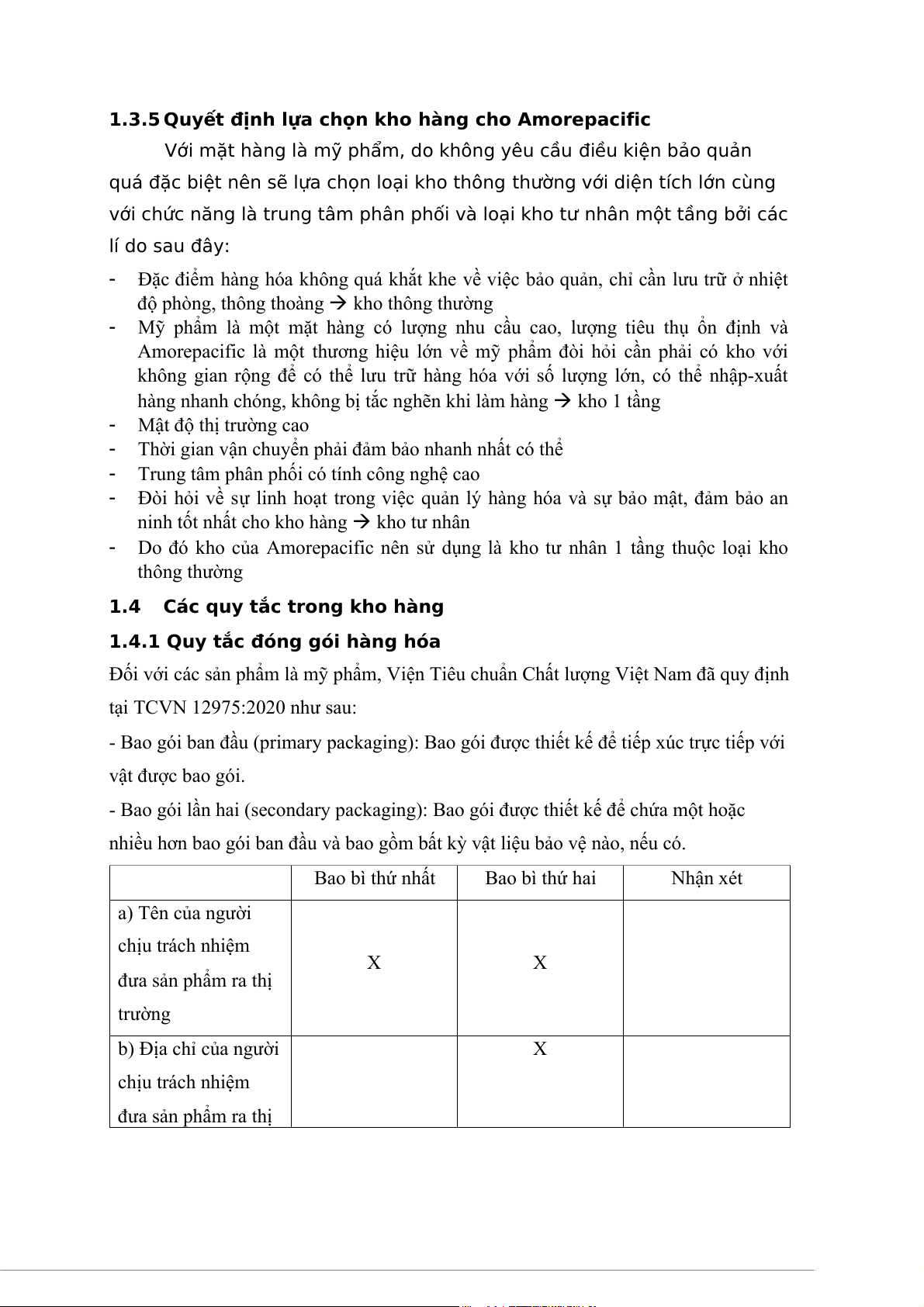 Theo như chương 1, Amorepacific đã quyết định xây kho một tầng thuộc loại kho