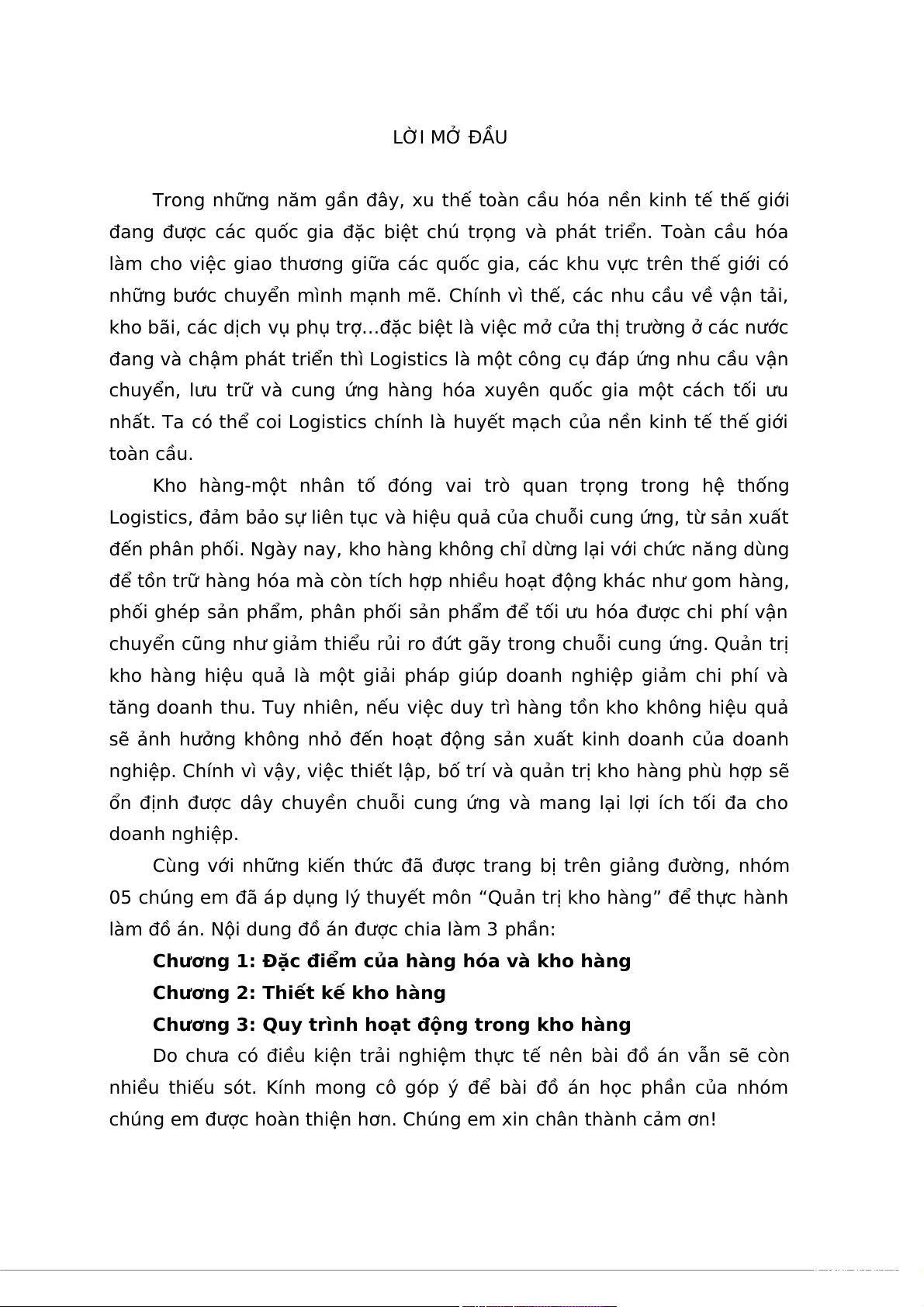 CHƯƠNG 1: ĐẶC ĐIỂM CỦA HÀNG HÓA VÀ KHO HÀNG
