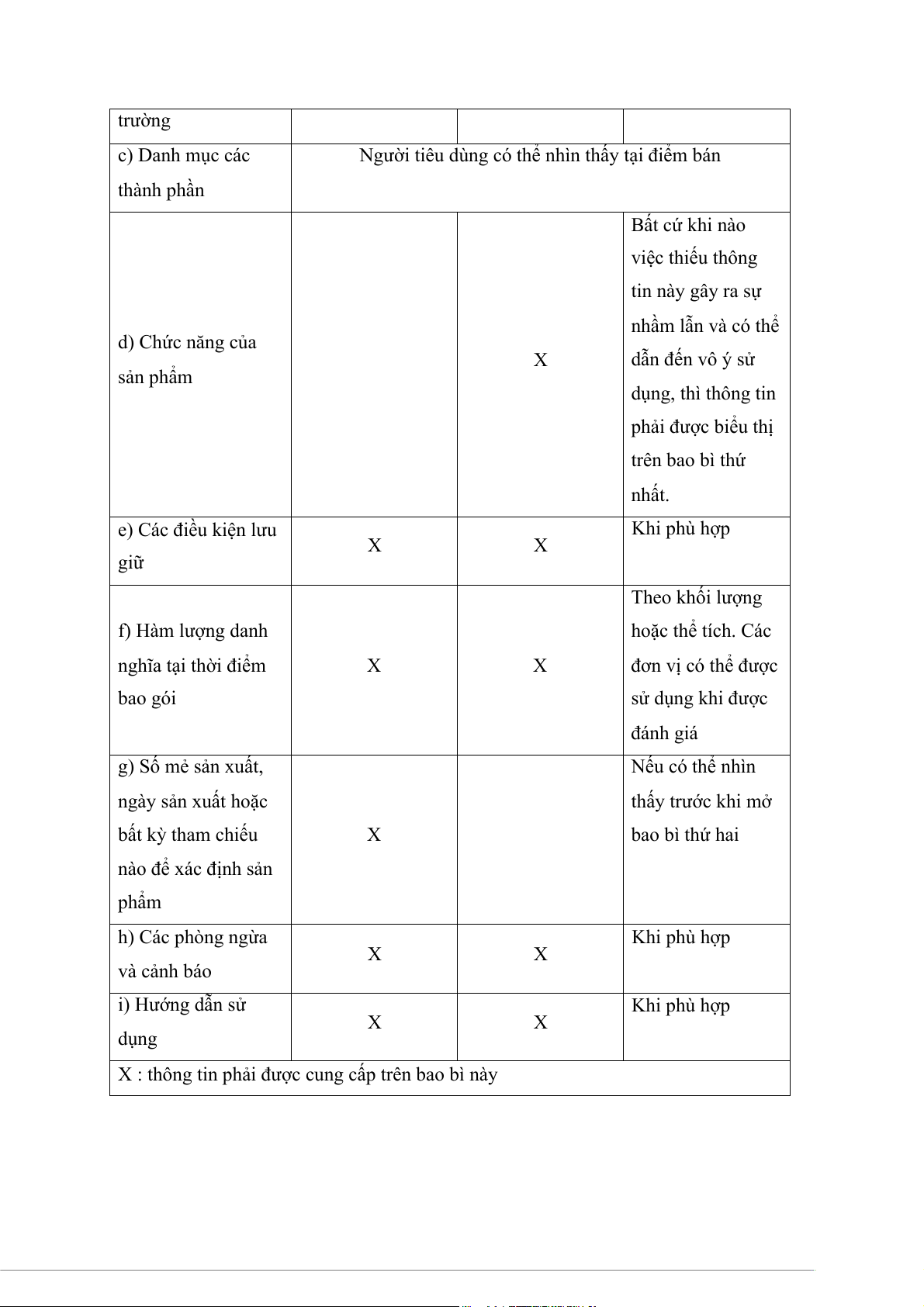 gồm: tên thương phẩm, loại hàng, ngày sản xuất, thành phần cấu tạo, tác dụng, trọng lượng...