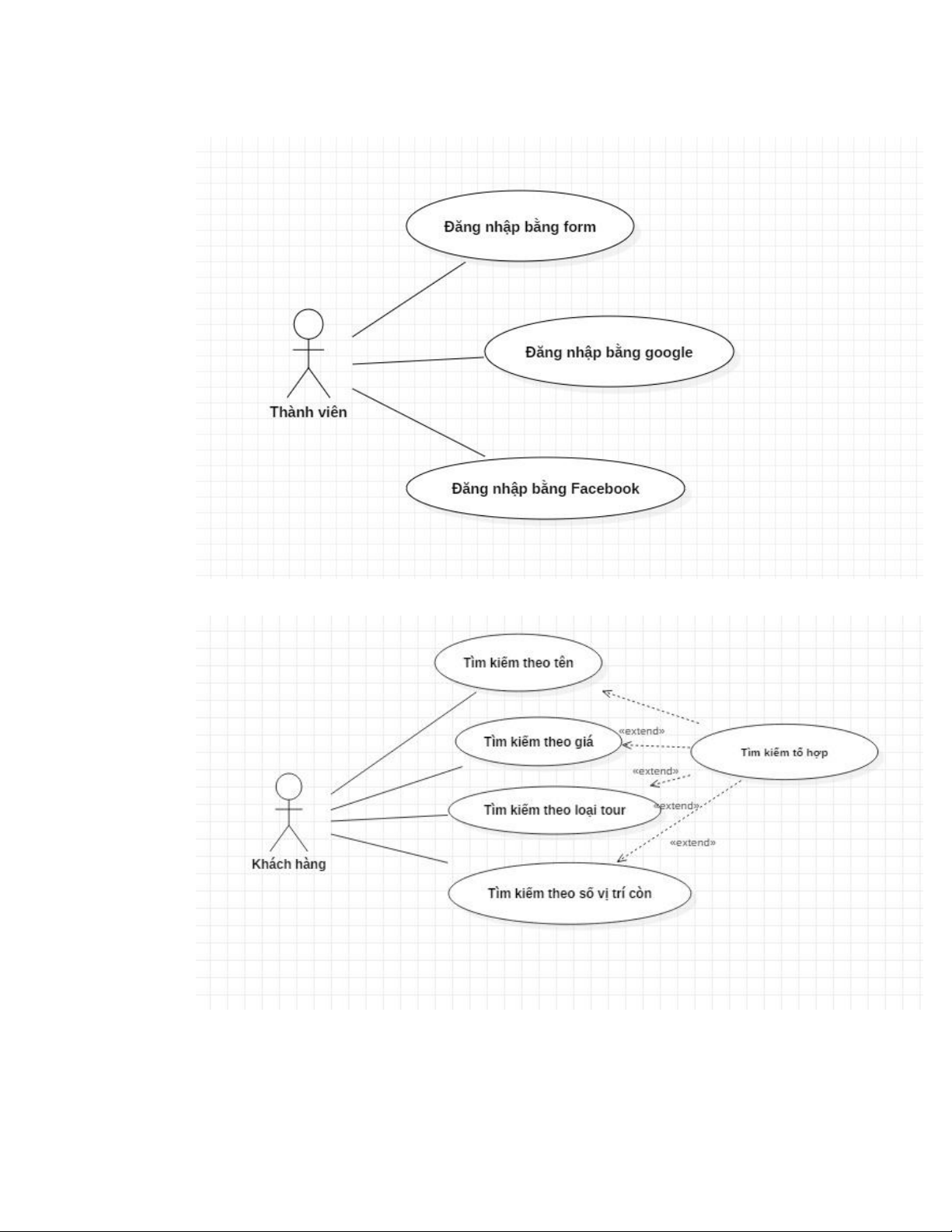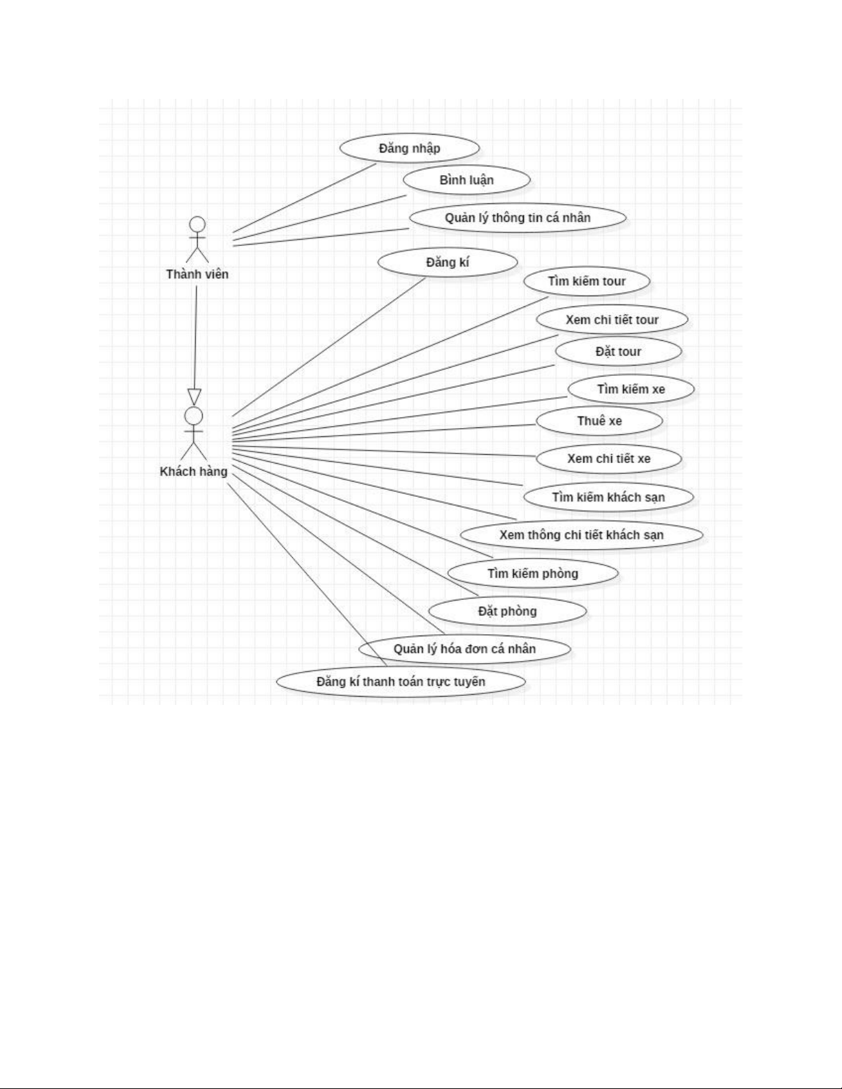 • Actor khách hàng: Khách hàng vào website có thể tìm kiếm, xem tour và tiến hành