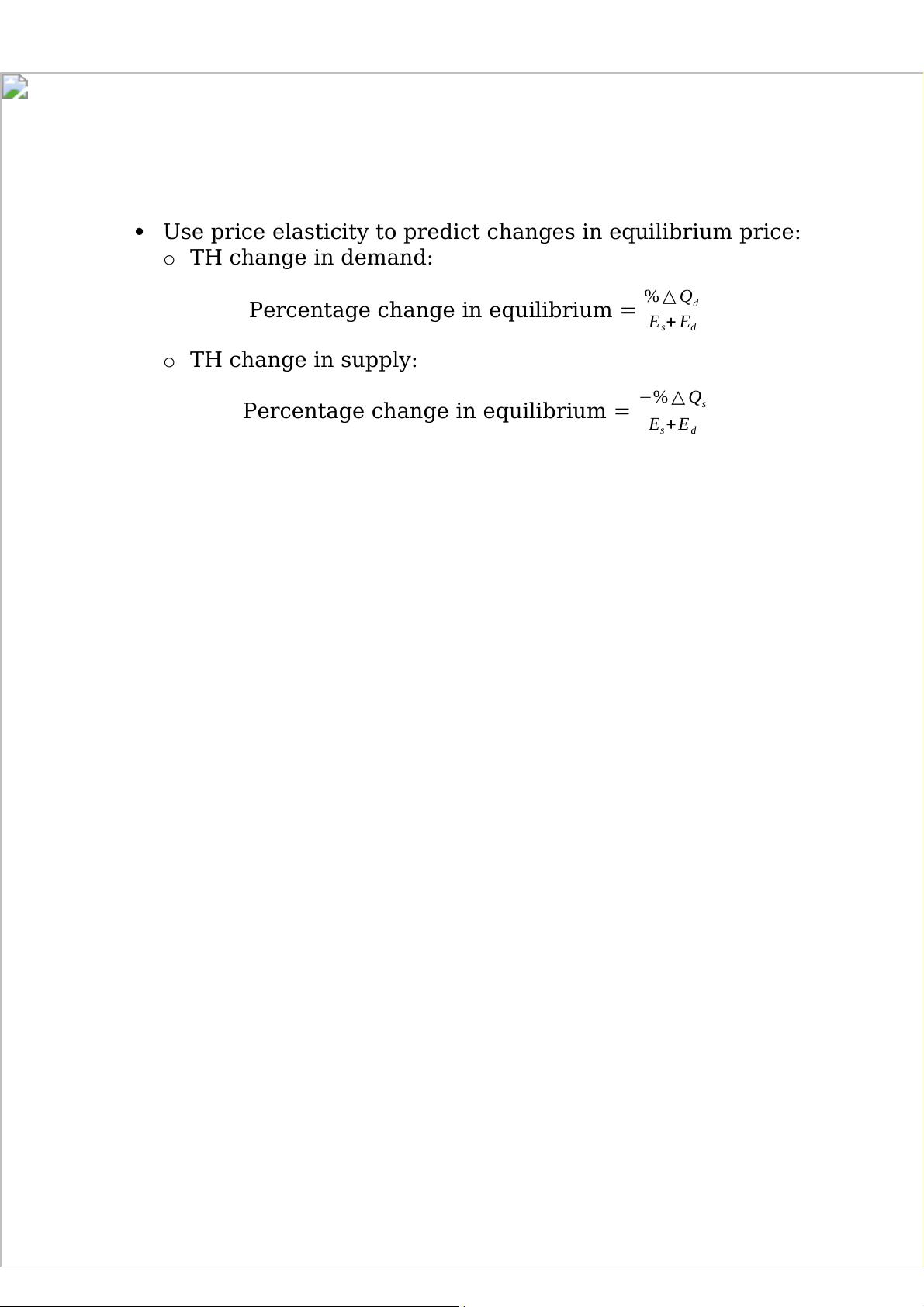 Use price elasticity to predict changes in equilibrium price: o TH change in demand: