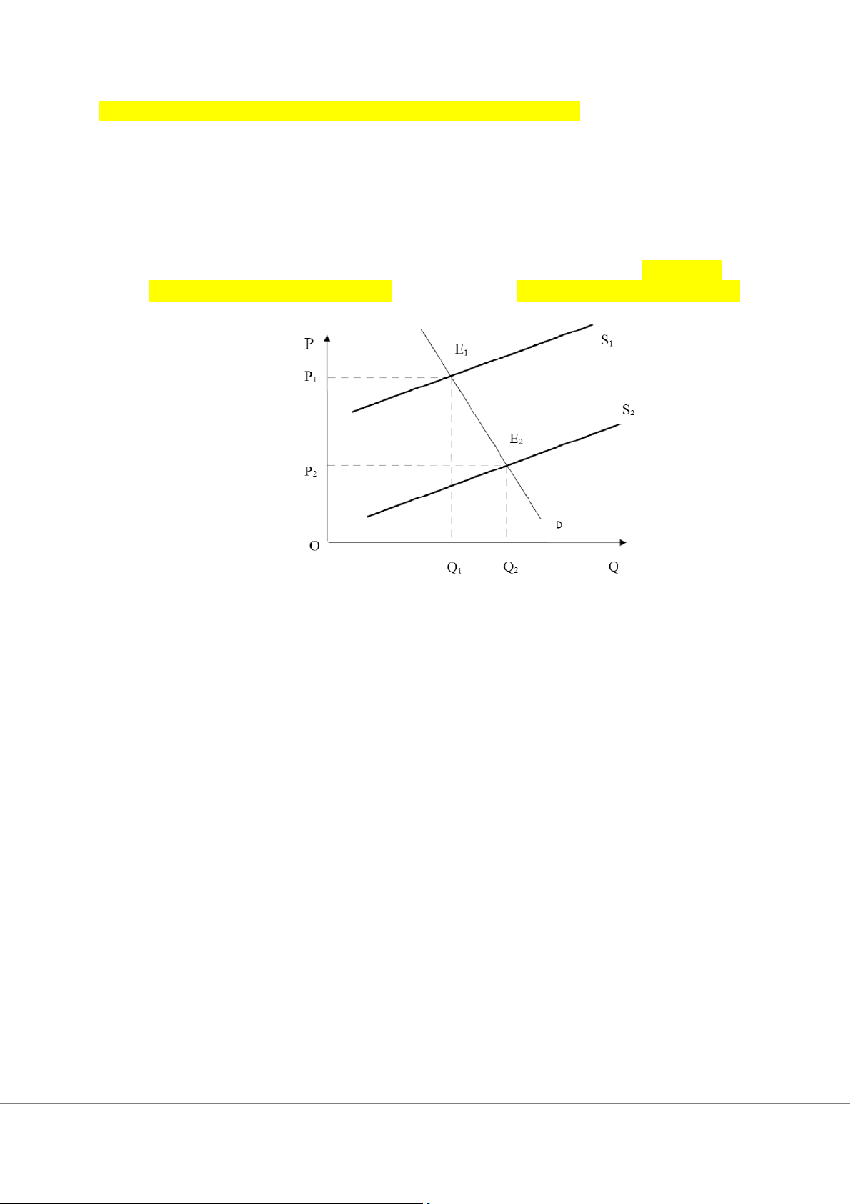 Theo hình 1, khi cân bằng ban đầu bằng E1 với mức giá cân bằng là P1 và sản lượng cân