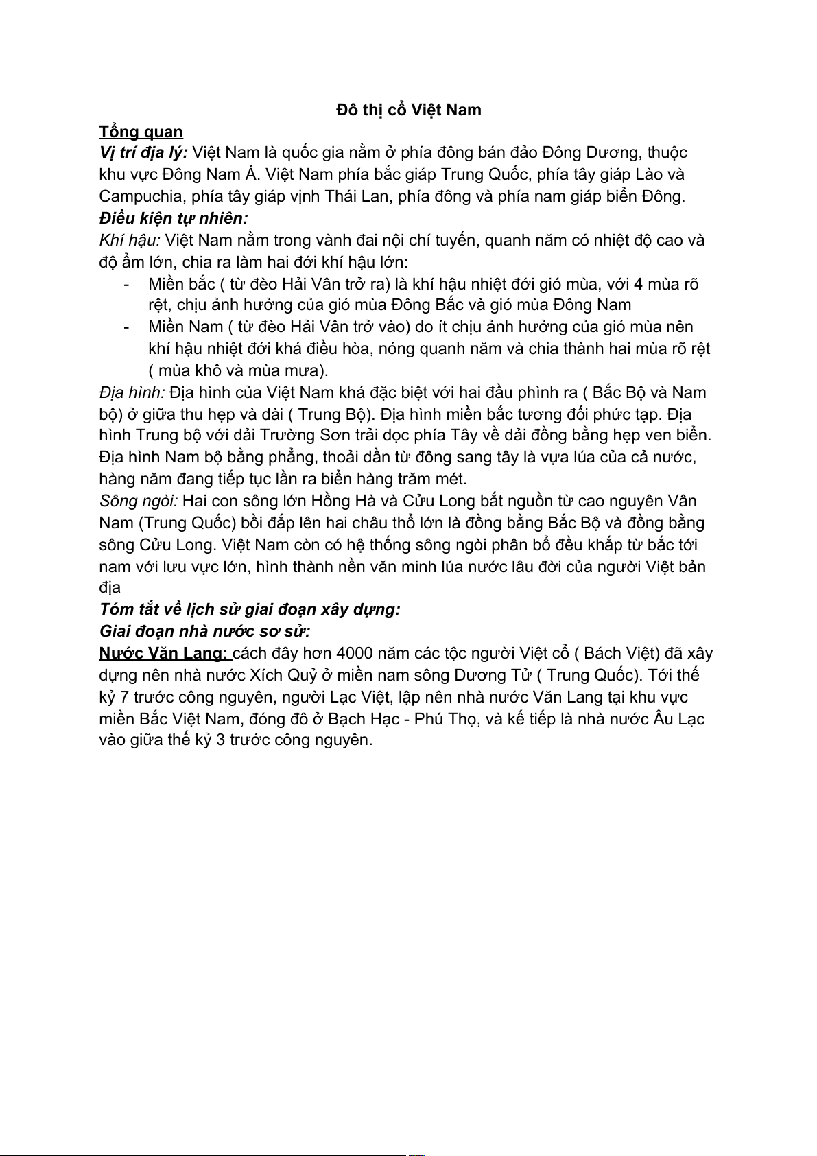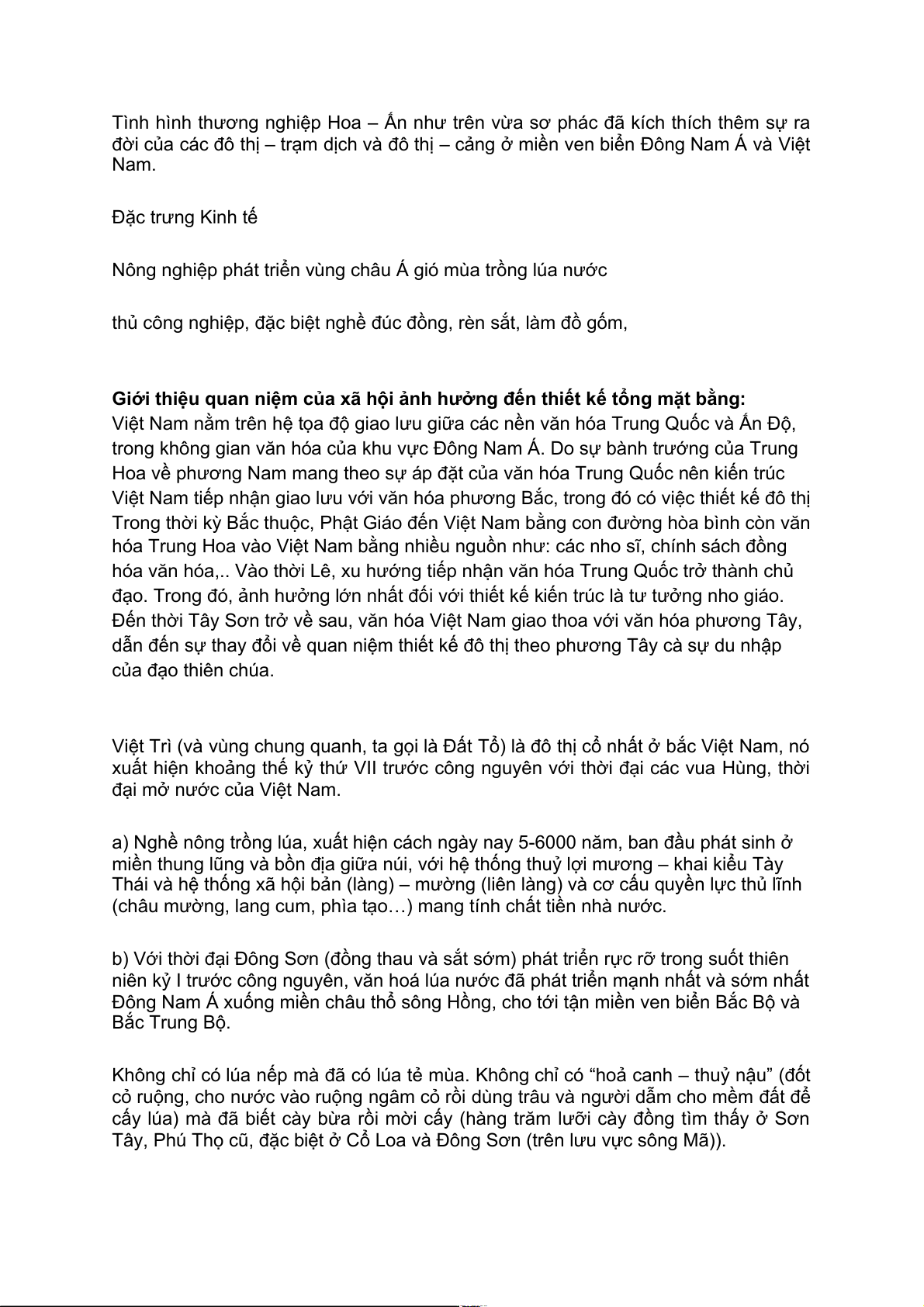 - Giai đoạn sơ sử: Do tiềm lực đất nước còn kém nên đô thị mang nặng tính