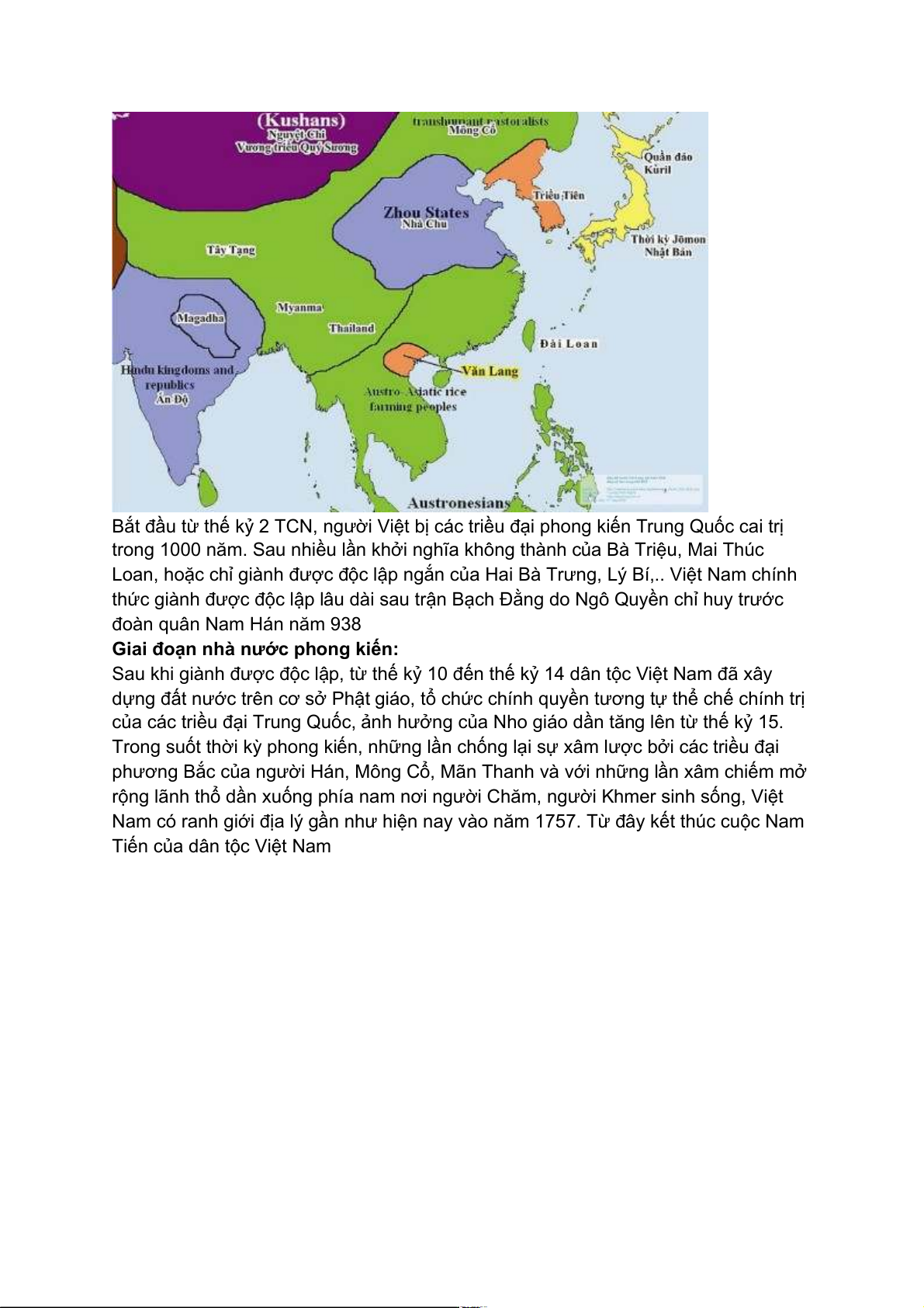 Bắt đầu từ thế kỷ 2 TCN, người Việt bị các triều đại phong kiến Trung Quốc cai trị