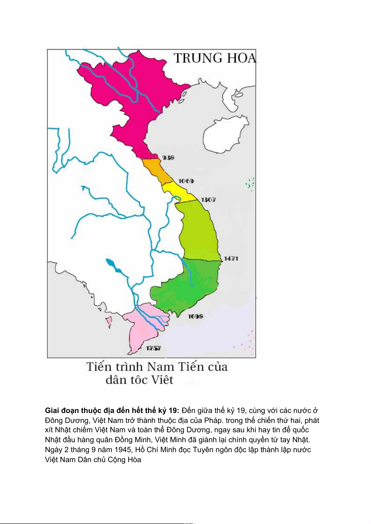 rộng lãnh thổ dần xuống phía nam nơi người Chăm, người Khmer sinh sống, Việt