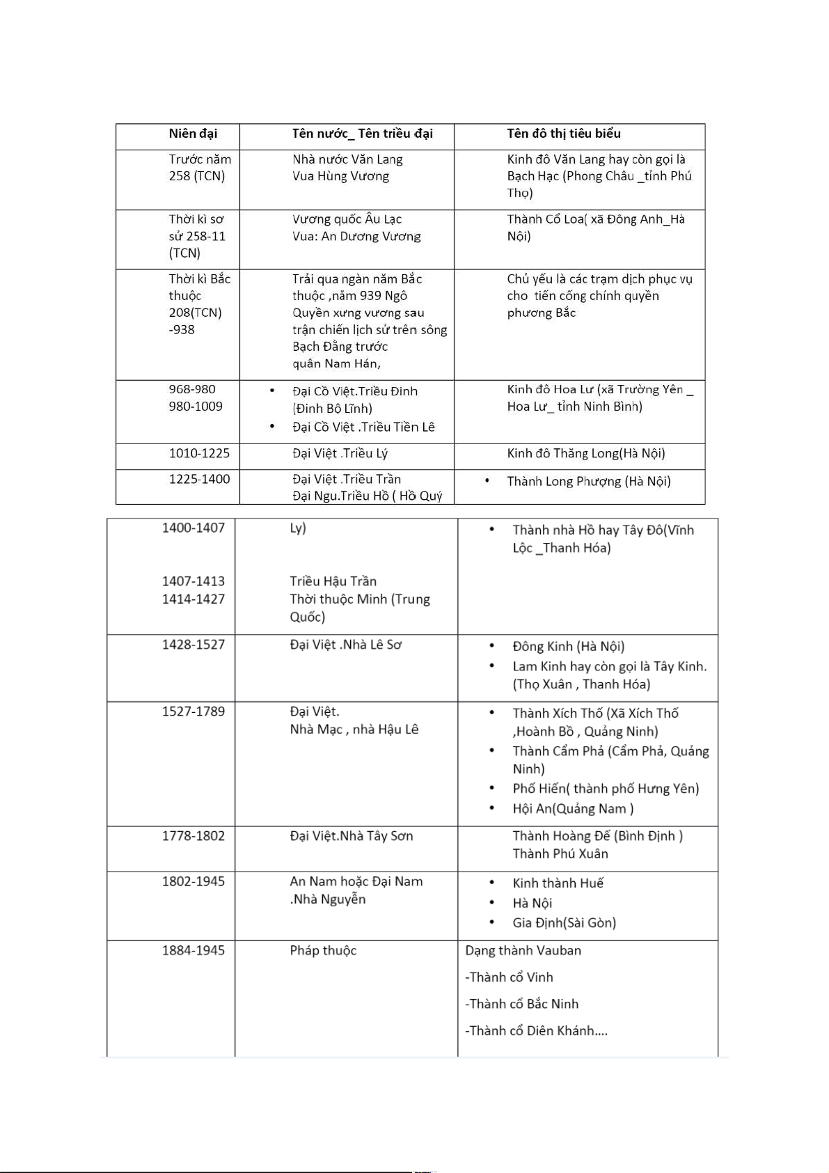 của cả nước hay chỉ là trung tâm ở các địa phương. Đó là các kinh đô của các triều