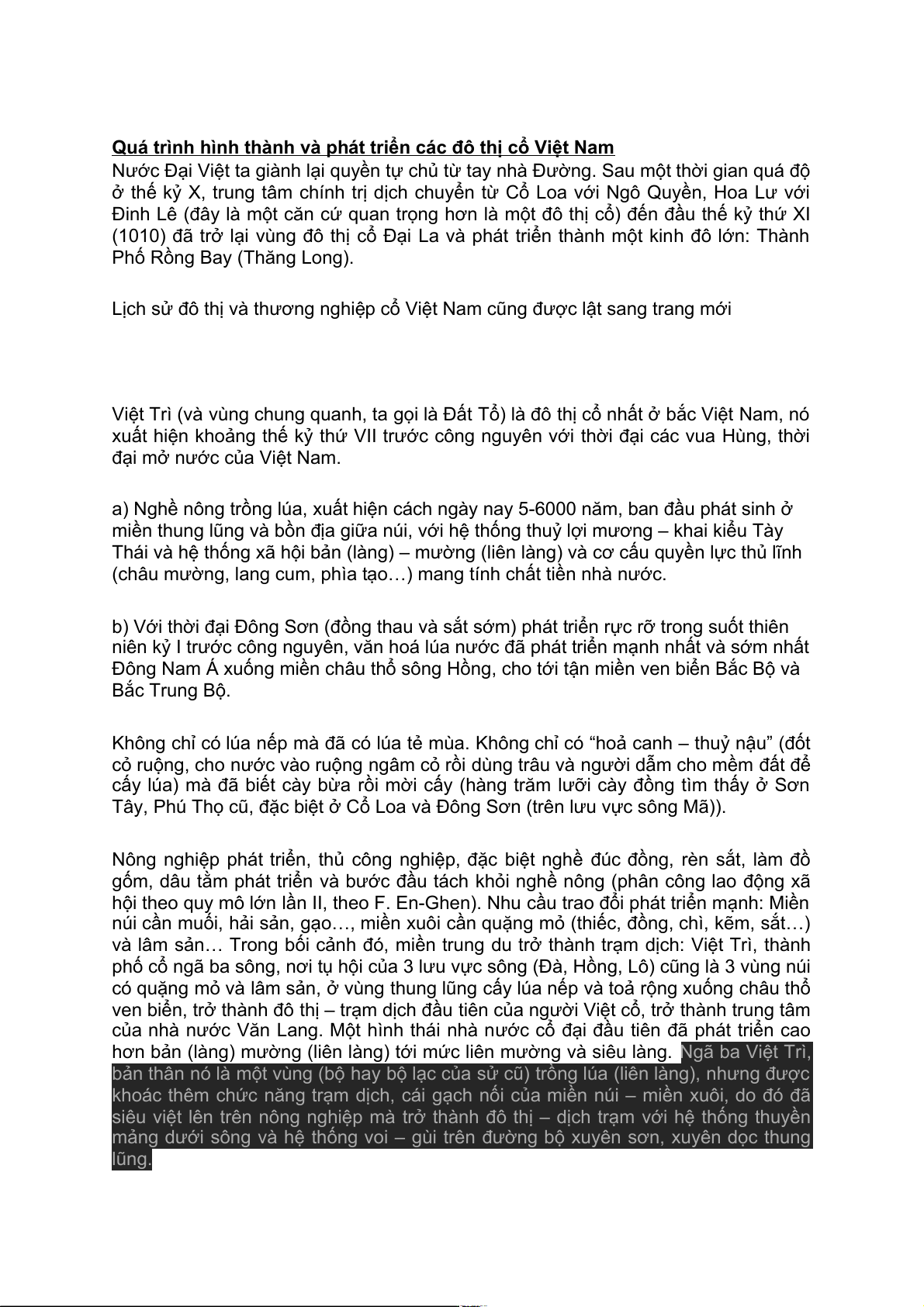 và lâm sản… Trong bối cảnh đó, miền trung du trở thành trạm dịch: Việt Trì, thành