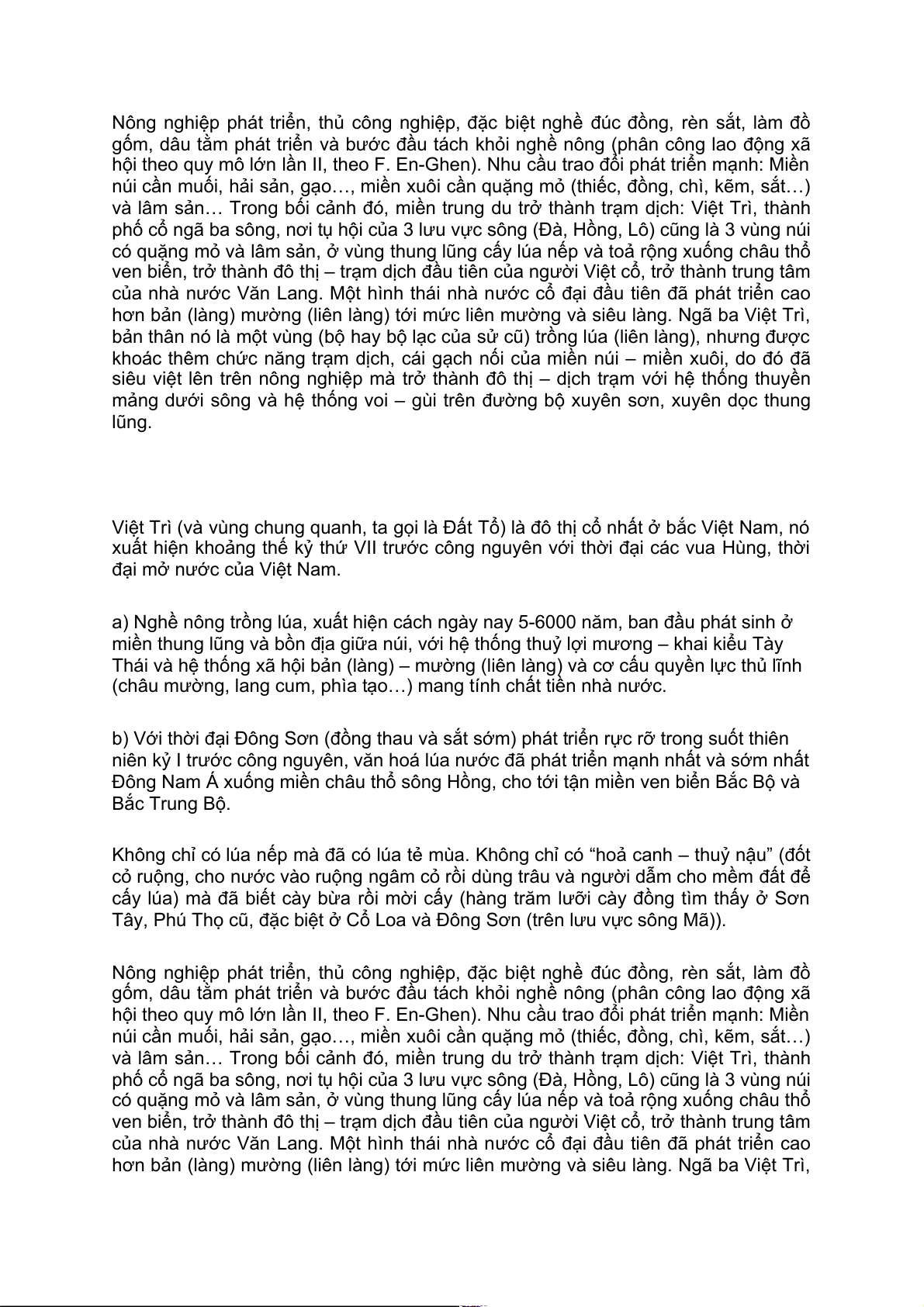 b) Với thời đại Đông Sơn (đồng thau và sắt sớm) phát triển rực rỡ trong suốt thiên